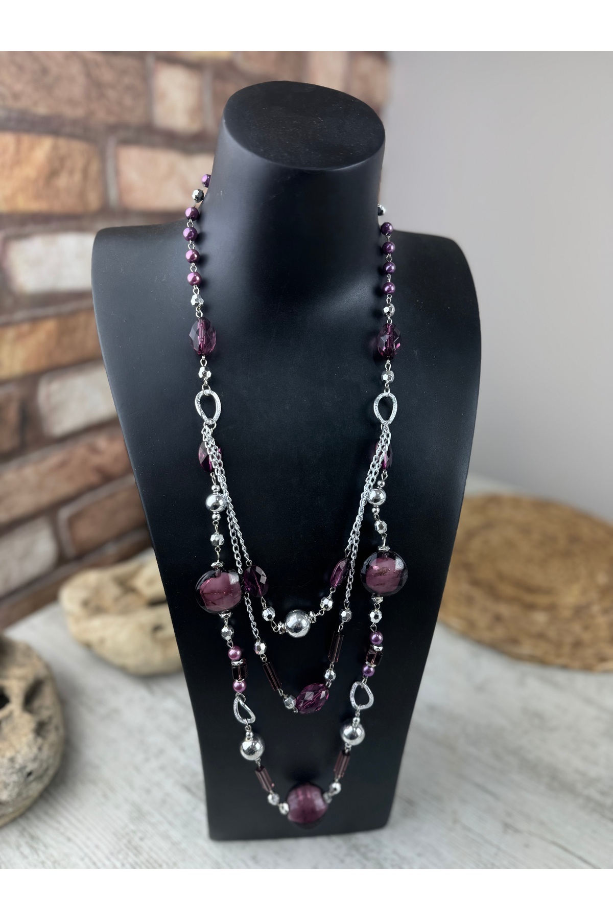 Mor taşlı uzun Vintage kolye Mor taşlı uzun Vintage kolye süs241 M