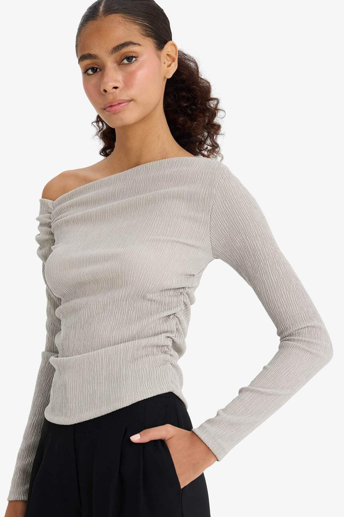 Slim Fit Dar Kesim Tek Omuzlu Bürümcük Uzun Kollu Bluz F3934AX25AU Slim Fit Dar Kesim Tek Omuzlu Bürümcük Uzun Kollu Bluz F3934AX25AU 2XL