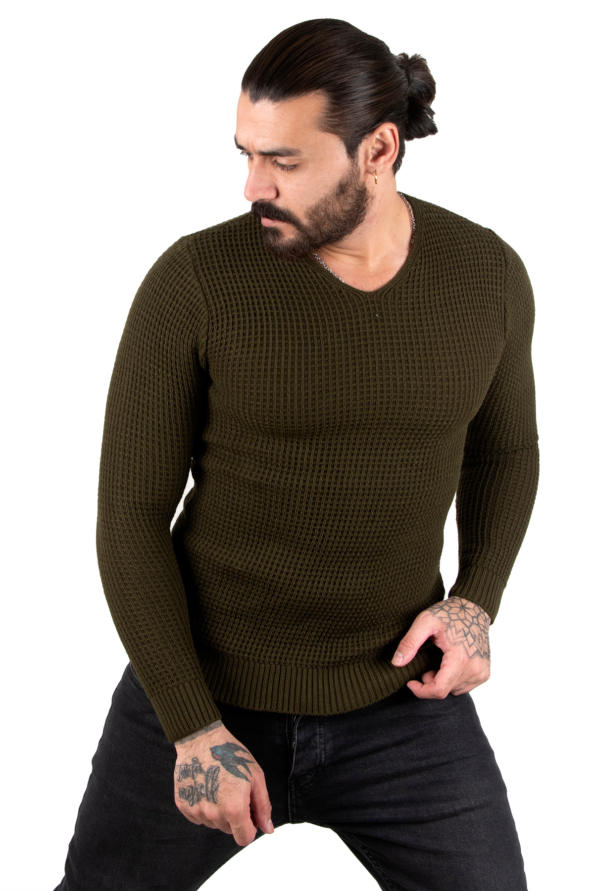 Erkek Açık Yaka Spor Dar Kalıp Kazak bej Erkek Açık Yaka Spor Dar Kalıp Kazak bej slmt2501 XL-XXL