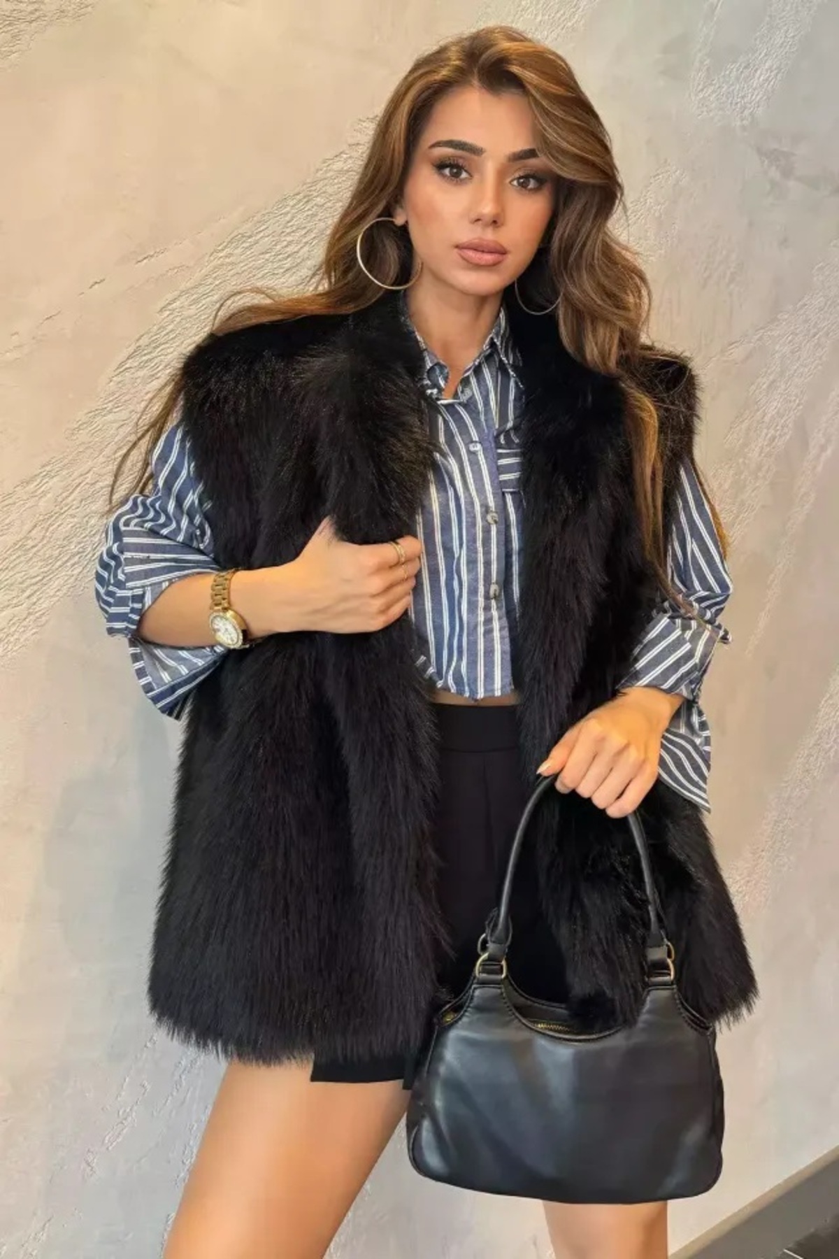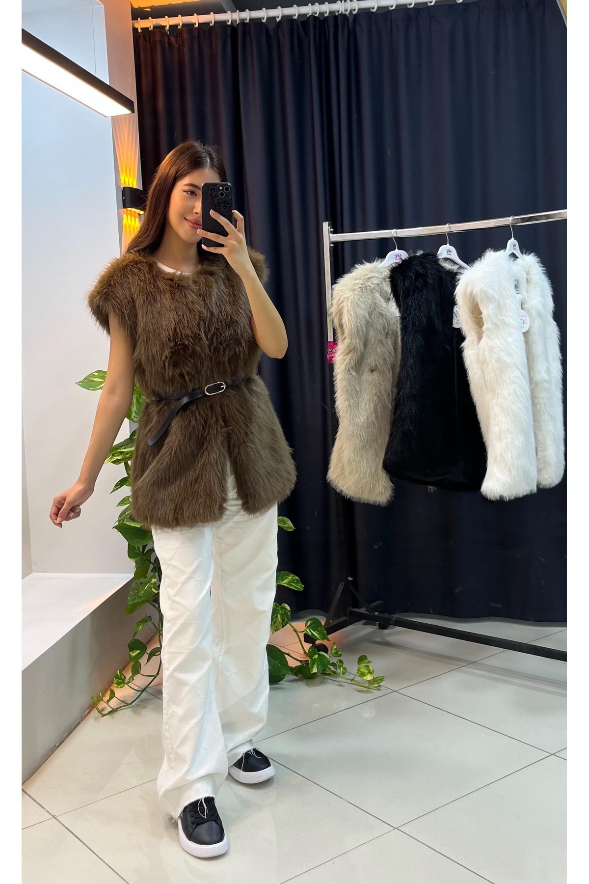 Kadın Kemerli Suni Kürk Yelek Kadın Kemerli Suni Kürk Yelek 2024003 L
