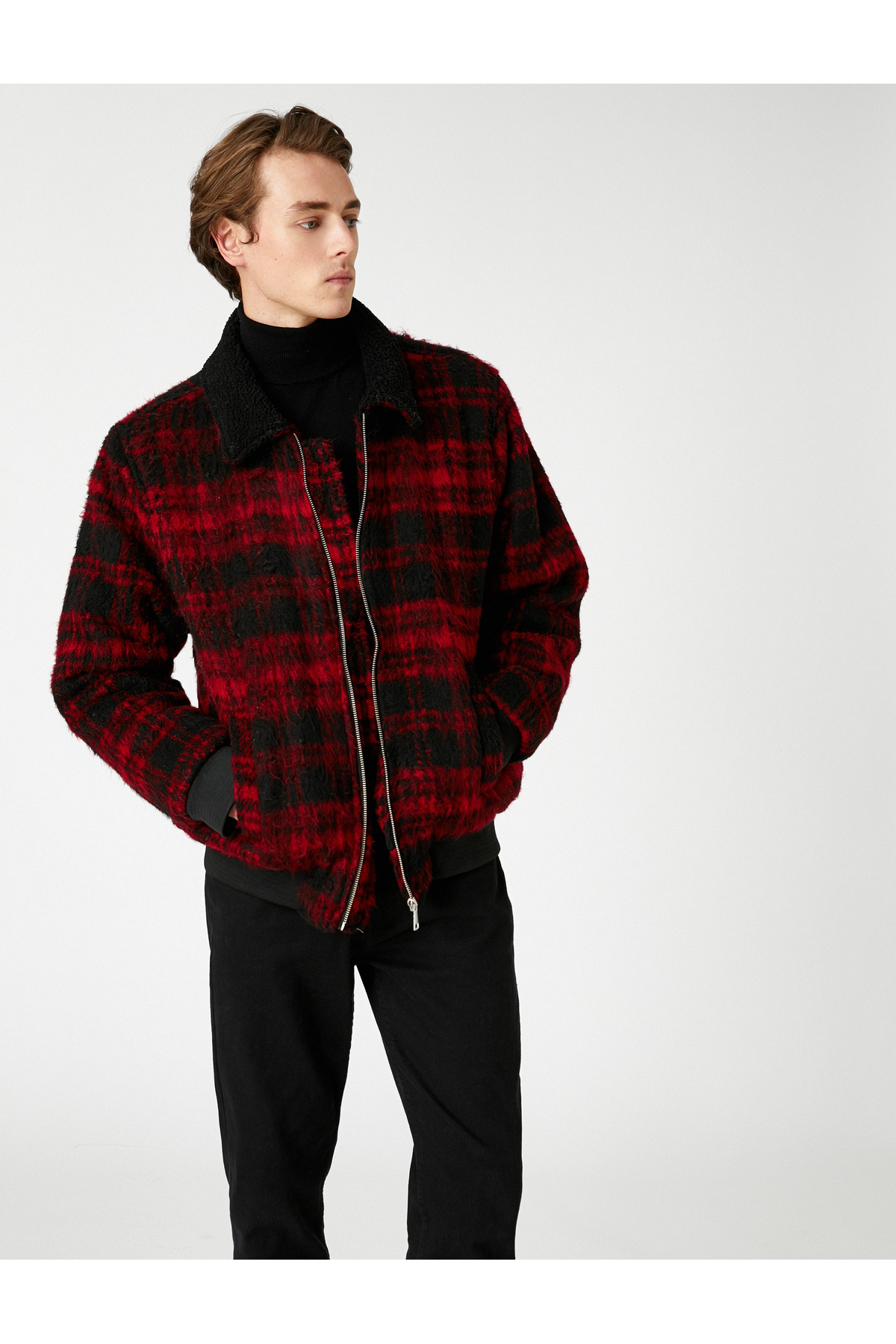 Suni Kürk Yakalı Kışlık Ekose Ceket - Antrasit | MEW341476-01 Suni Kürk Yakalı Kışlık Ekose Ceket - Antrasit | MEW341476-01 2XL