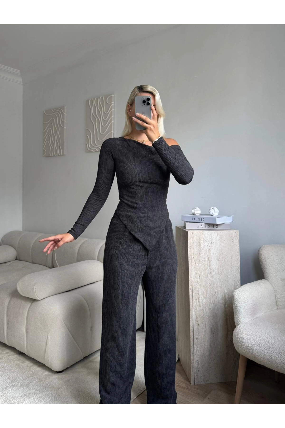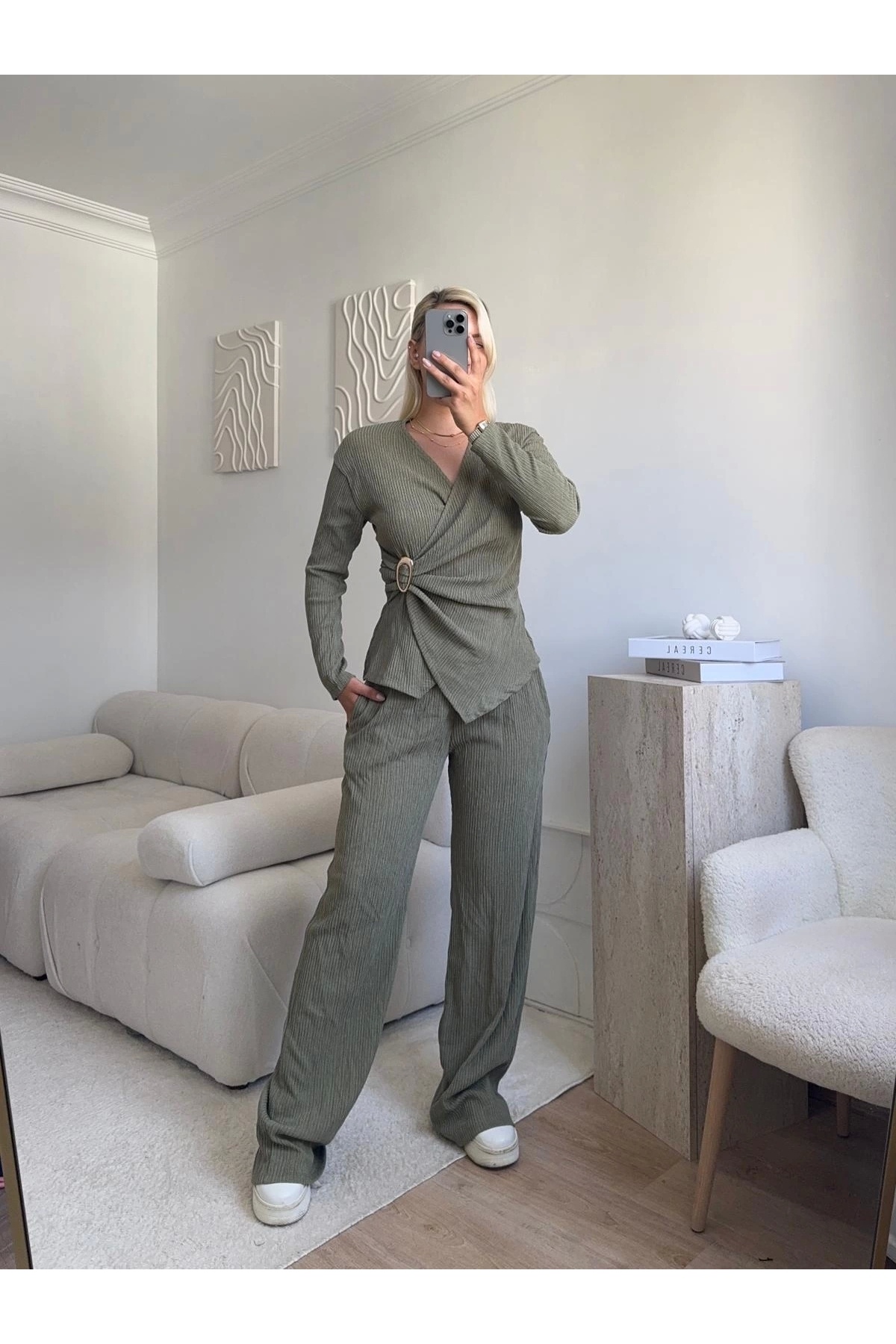 Kayık Yaka Crop & Pantolon Takım - VİZON Kayık Yaka Crop & Pantolon Takım - VİZON P3702S543 L