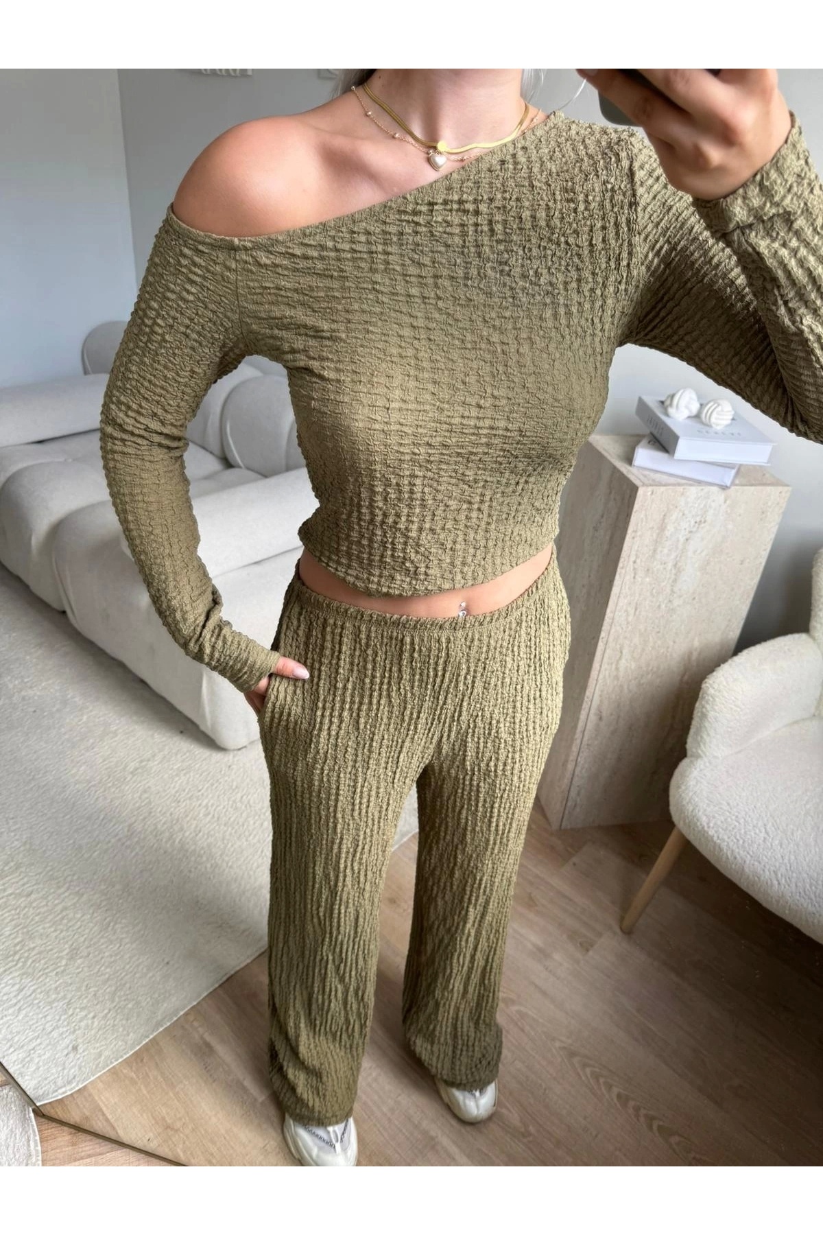 Kayık Yaka Crop & Pantolon Takım - YEŞİL Kayık Yaka Crop & Pantolon Takım - YEŞİL P3704S9098 L