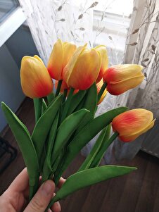 Yapay 8li Islak Lale Buketi Gerçek Doku Alev Turuncu Yapay 8li Islak Lale Buketi Gerçek Doku Alev Turuncu YPCCK-F-06 تک سایز