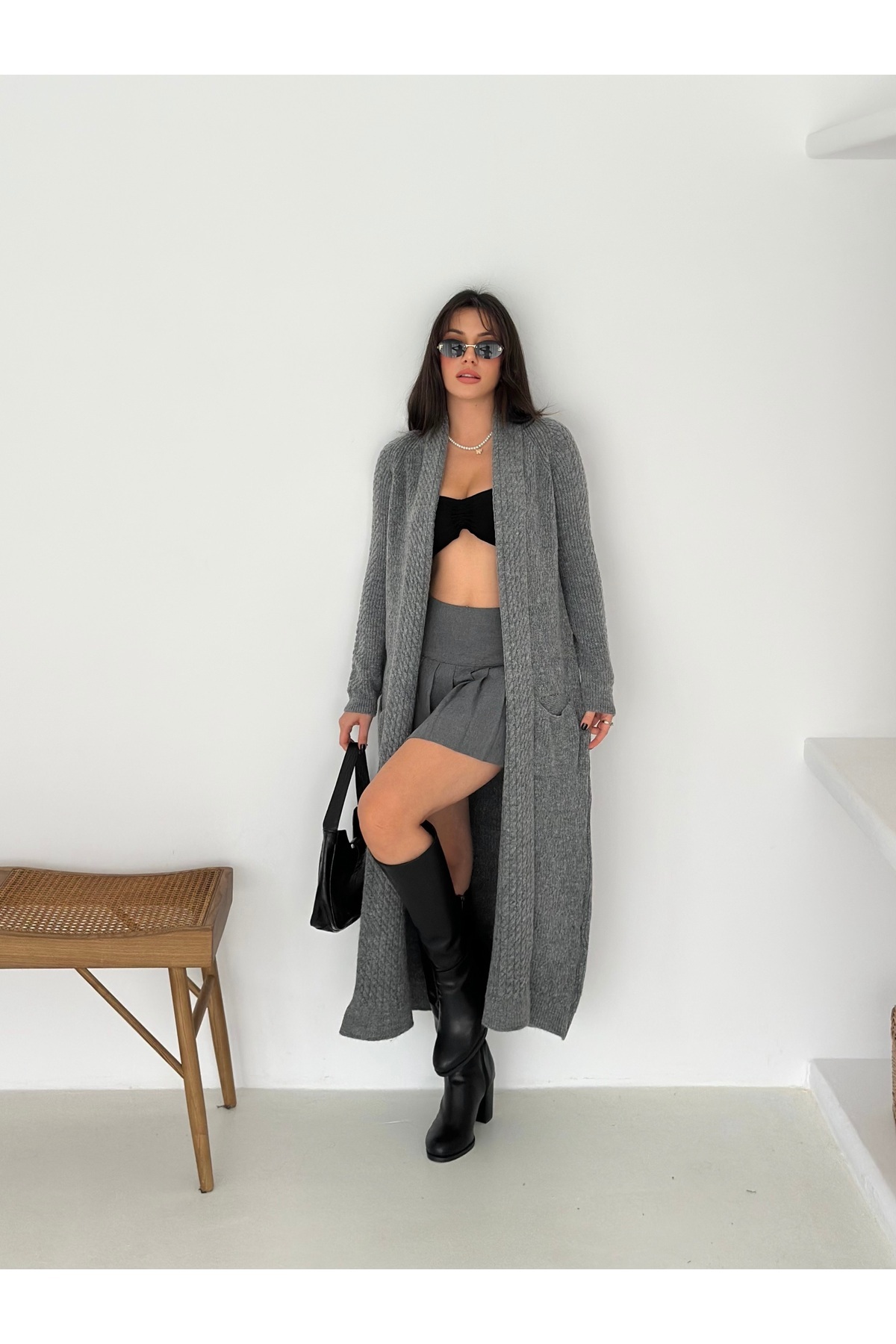 Şal Yaka Çift Cepli Uzun Triko Kumaş Hırka Şal Yaka Çift Cepli Uzun Triko Kumaş Hırka 547454844FREJYA Standart