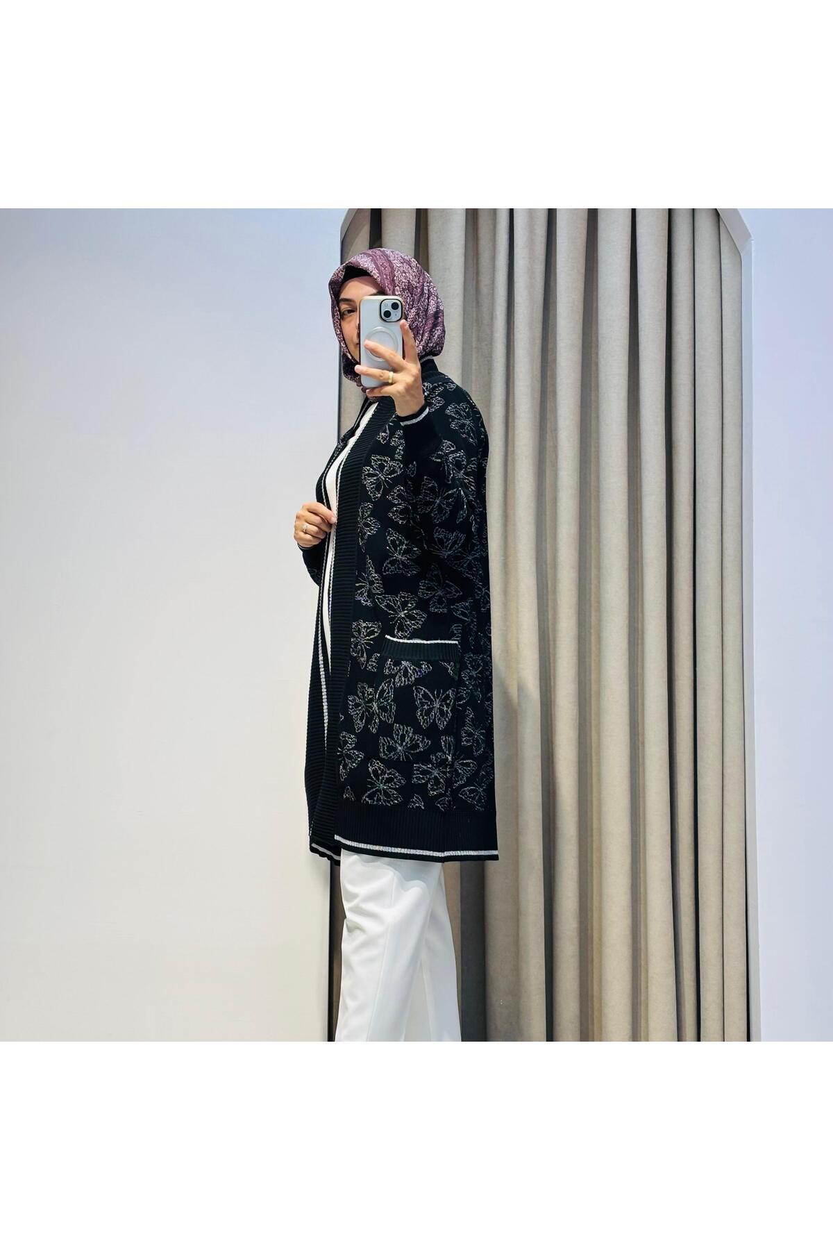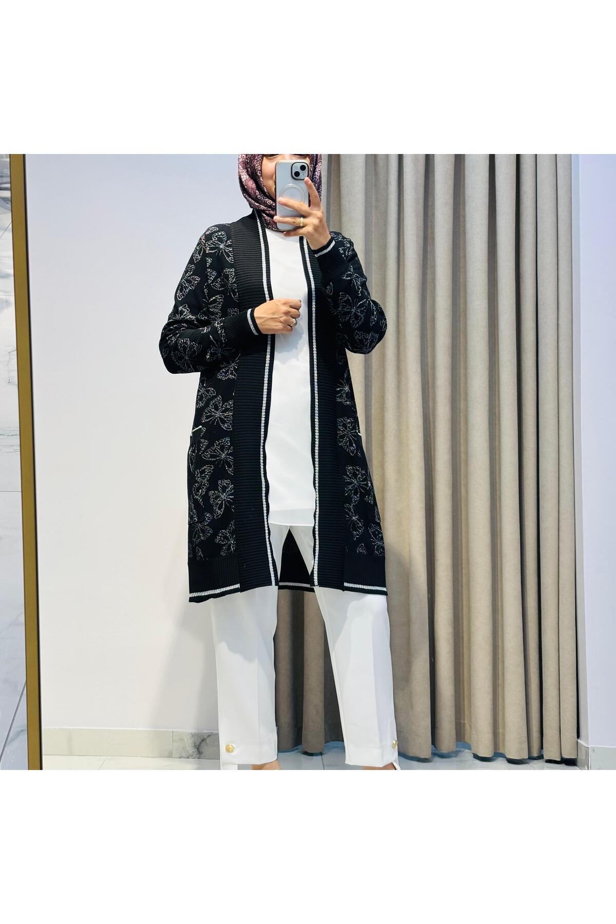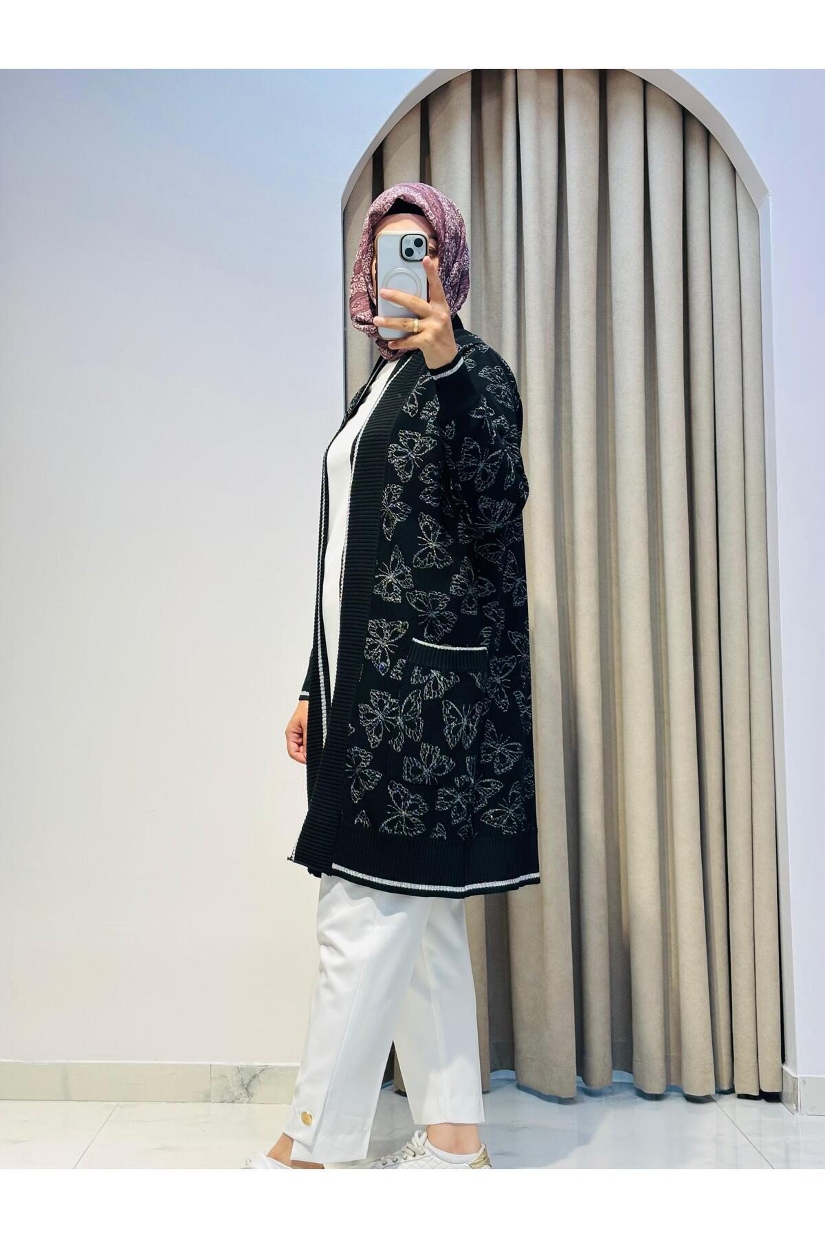 KELEBEK DESENLİ SİMLİ HIRKA SİYAH VE BEYAZ KELEBEK DESENLİ SİMLİ HIRKA SİYAH VE BEYAZ 5KHRK9028 2