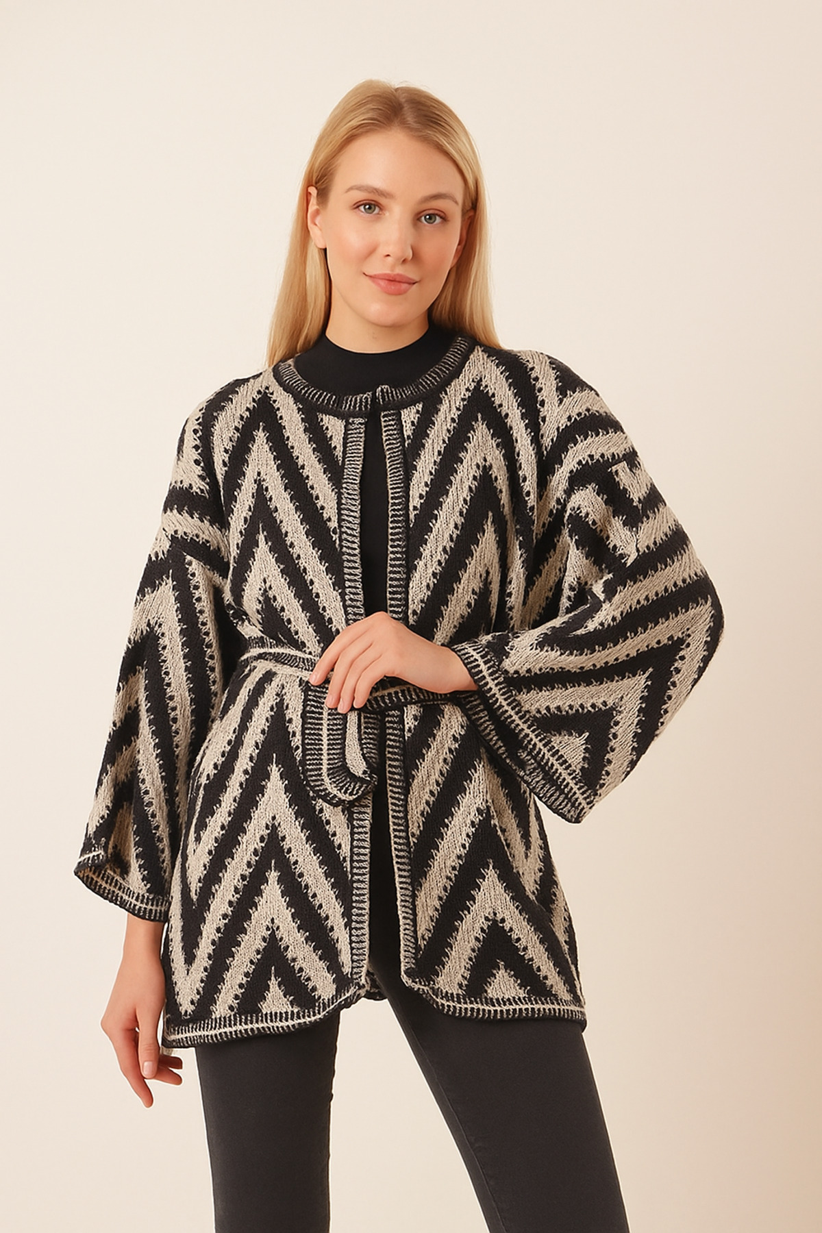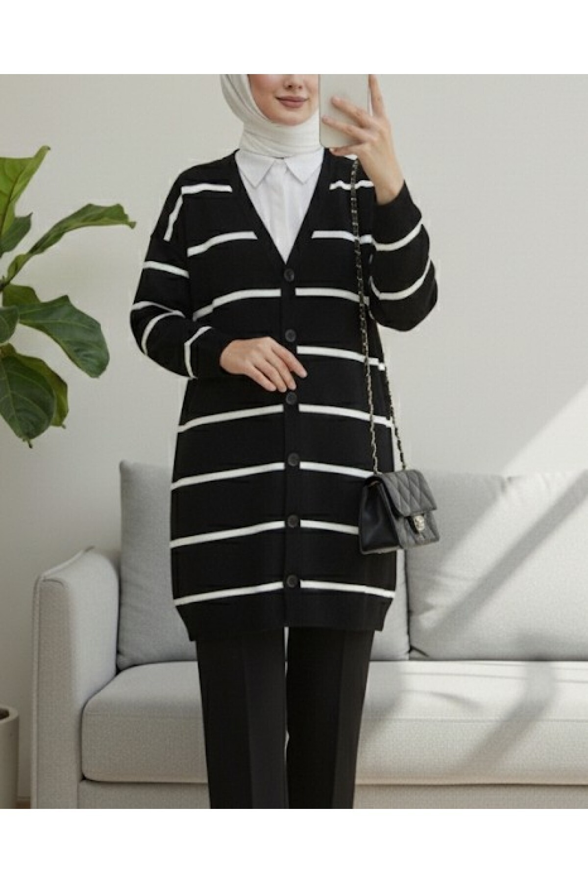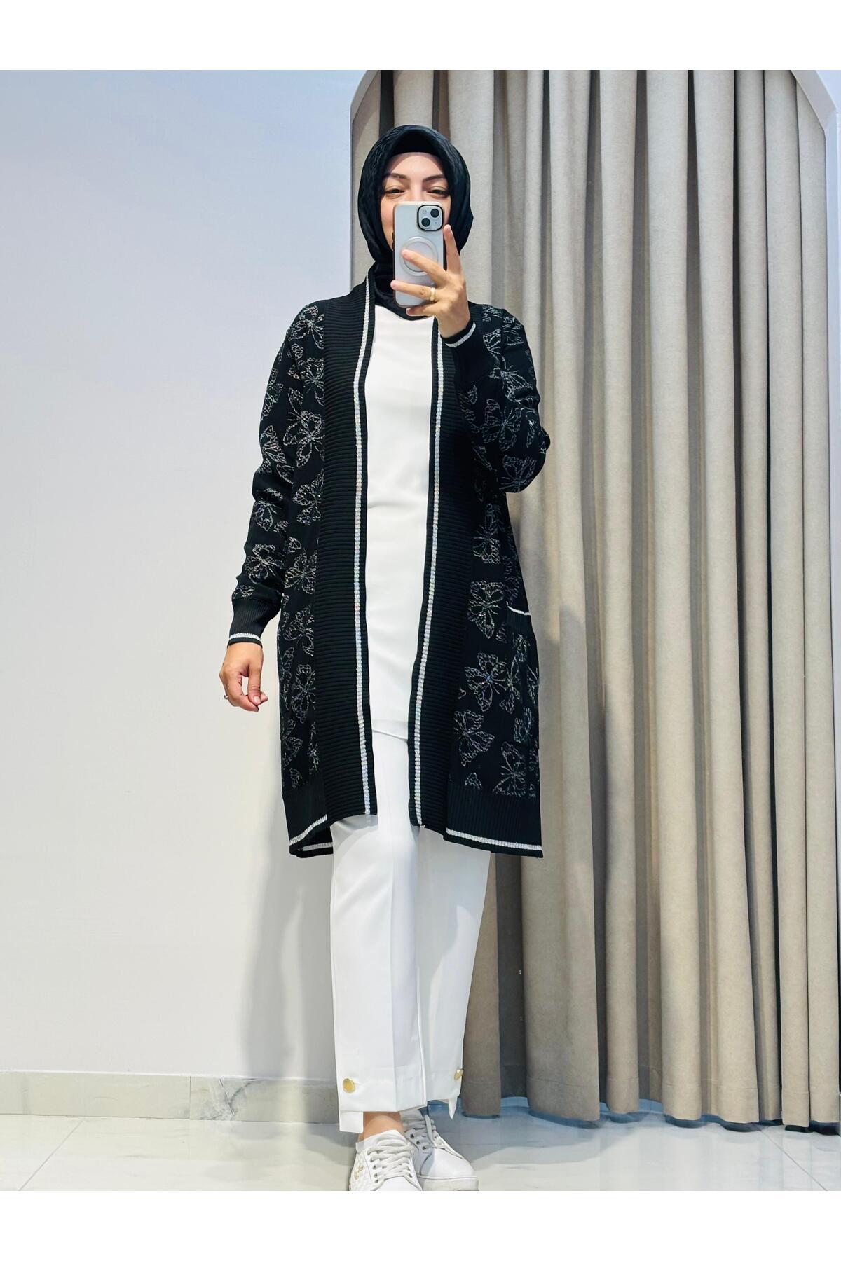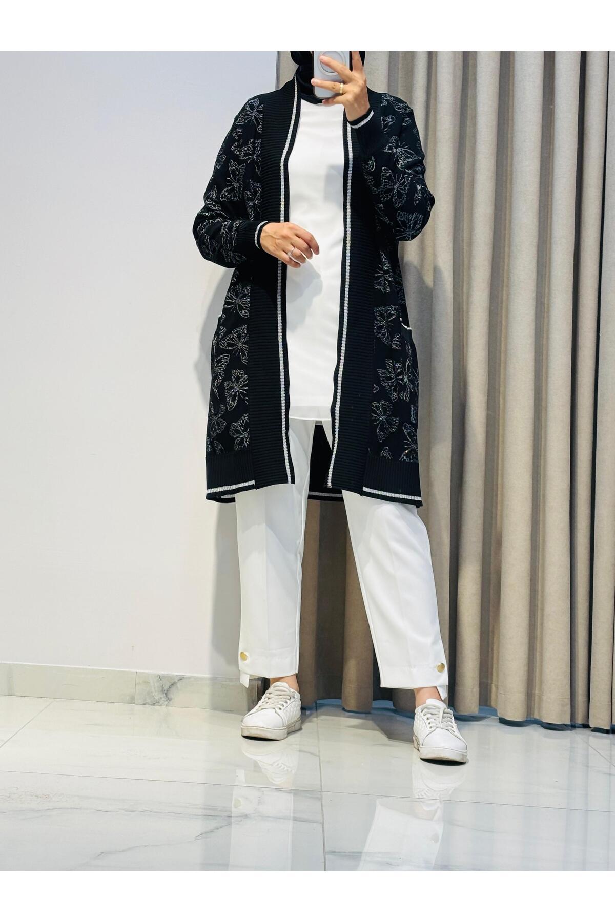 KELEBEK DESENLİ SİMLİ HIRKA SİYAH VE BEYAZ KELEBEK DESENLİ SİMLİ HIRKA SİYAH VE BEYAZ 5KHRK9028 2