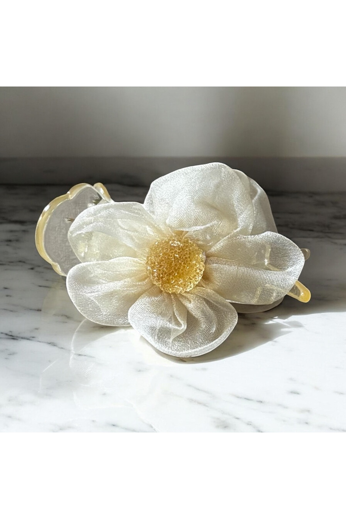 Krem organze çiçek detaylı topuz Tokası kelebek toka Krem organze çiçek detaylı topuz Tokası kelebek toka INCK000862 تک سایز
