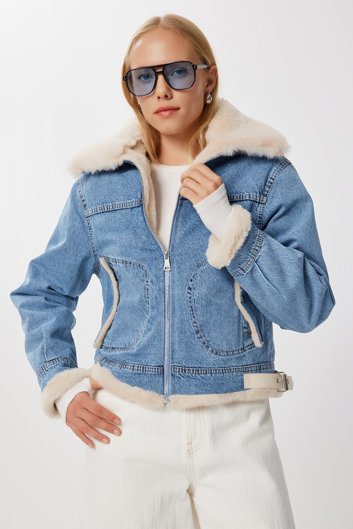 İçi Kürklü Polo Yaka Denim Ceket LAN0073 MAVİ İçi Kürklü Polo Yaka Denim Ceket LAN0073 MAVİ 40