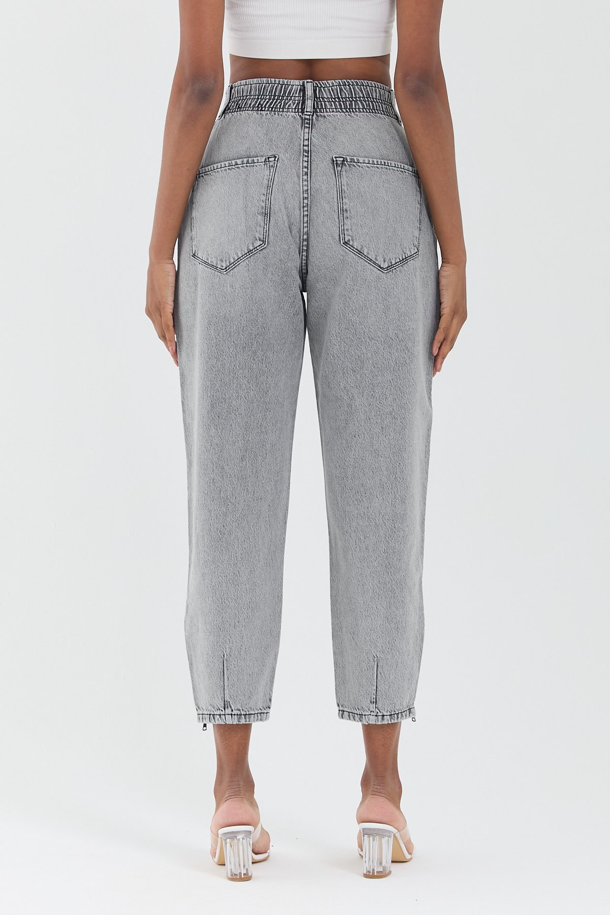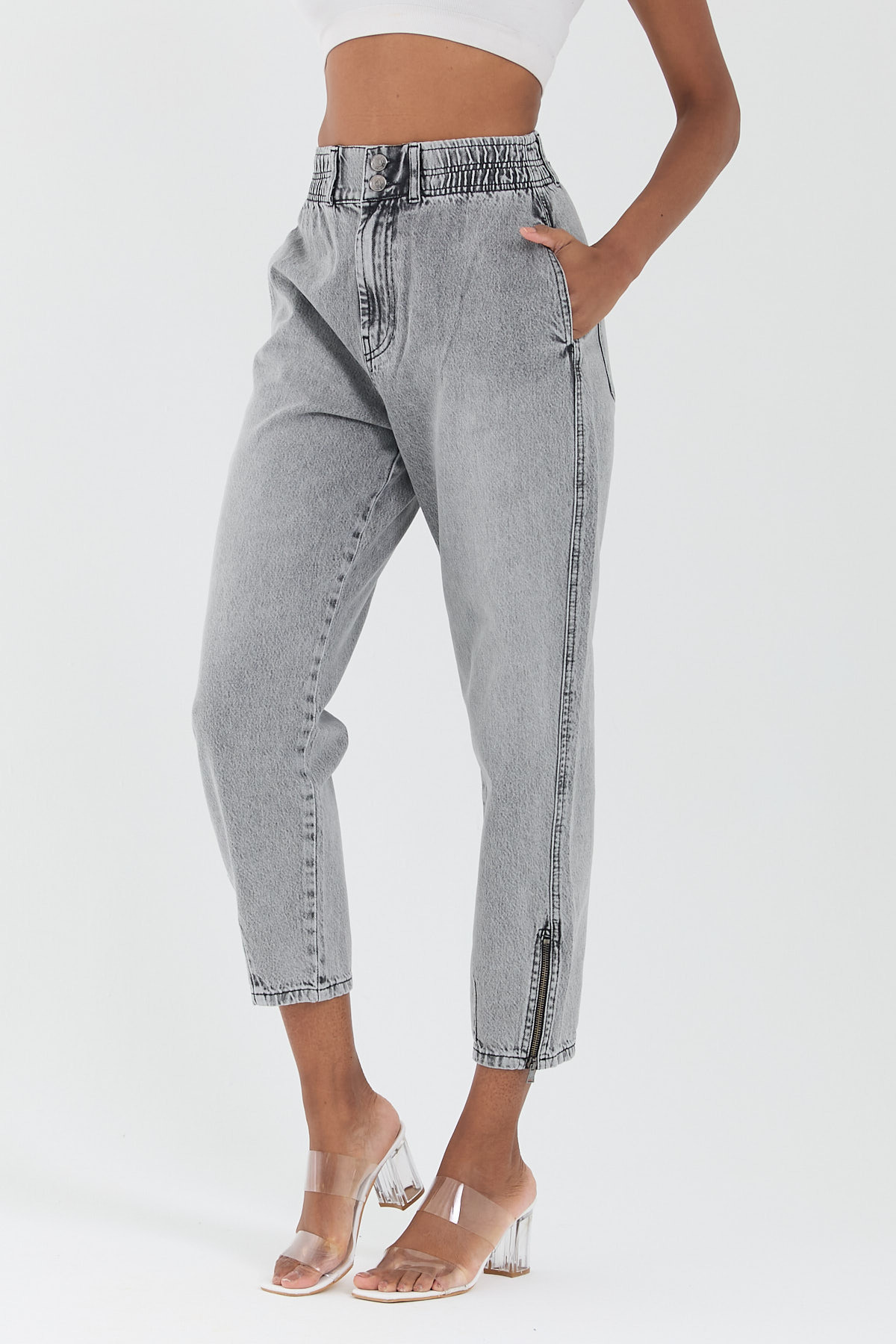 Kadın Gri Paça Fermuar Detaylı Mom Jeans Kadın Gri Paça Fermuar Detaylı Mom Jeans CRC1114 25