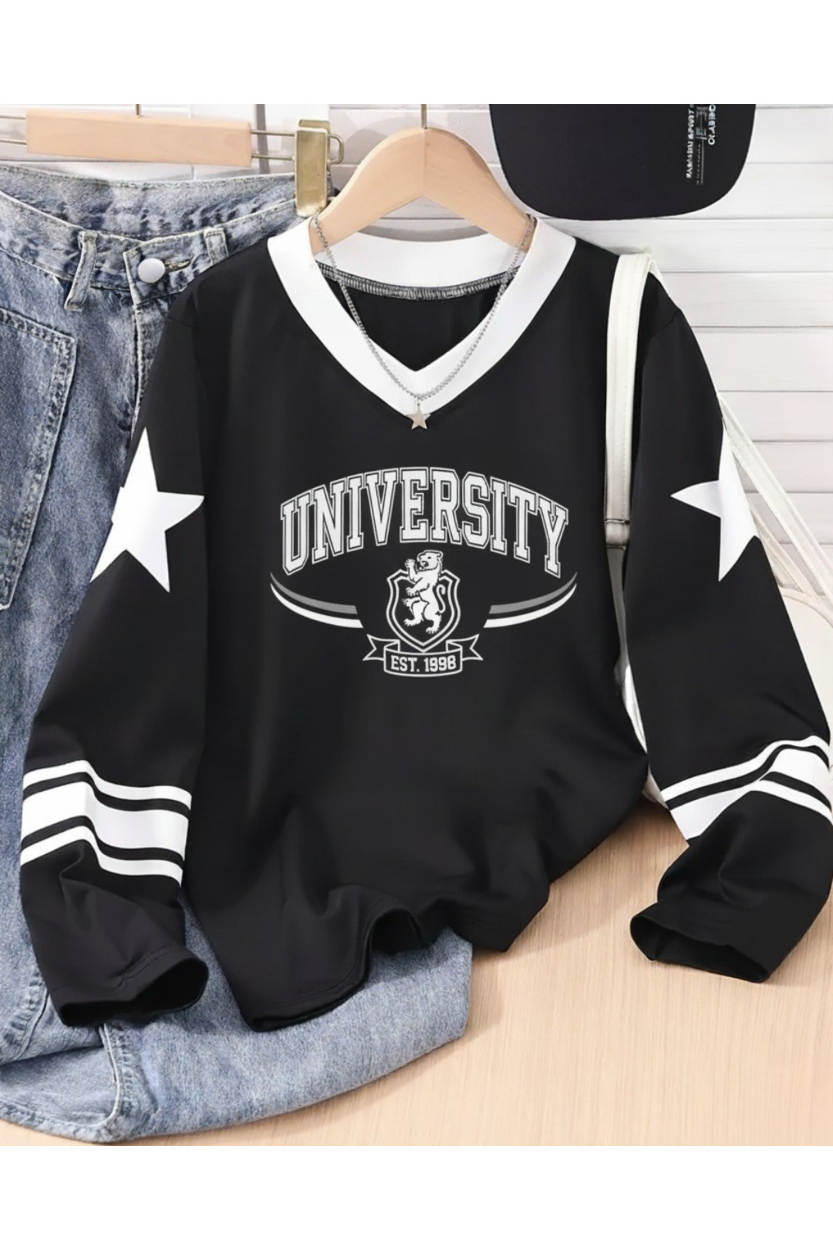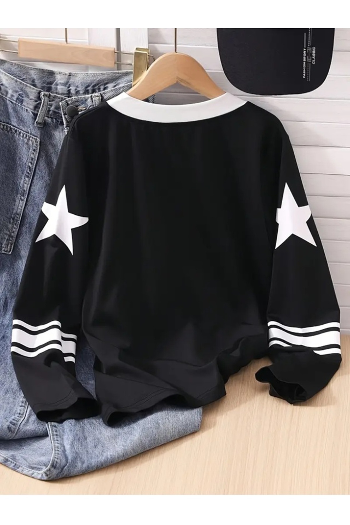 28 Number Star Baskılı V Yaka Oversize Sweatshirt 28 Number Star Baskılı V Yaka Oversize Sweatshirt 28touz01 XL
