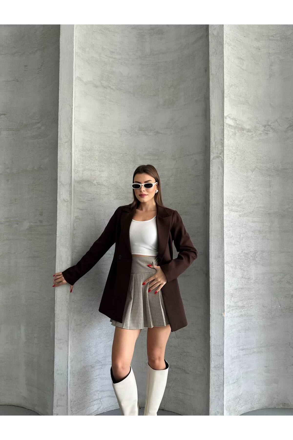 Kadın Dabıl Kumaş Çift Düğmeli Pens Detaylı Blazer Ceket Kadın Dabıl Kumaş Çift Düğmeli Pens Detaylı Blazer Ceket ParlaÇiftDüğmeliPensDetayBlazerCeket XL