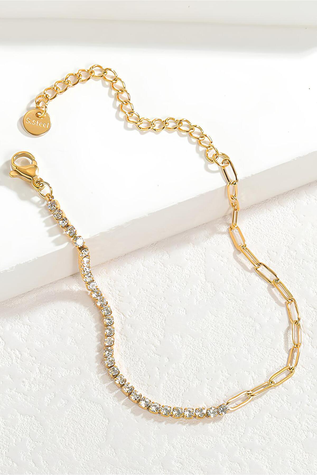 Kadın Lüks Su Yolu Zincirli Gold Kararmaz Çelik Bileklik Kadın Lüks Su Yolu Zincirli Gold Kararmaz Çelik Bileklik THE0ZS236 تک سایز