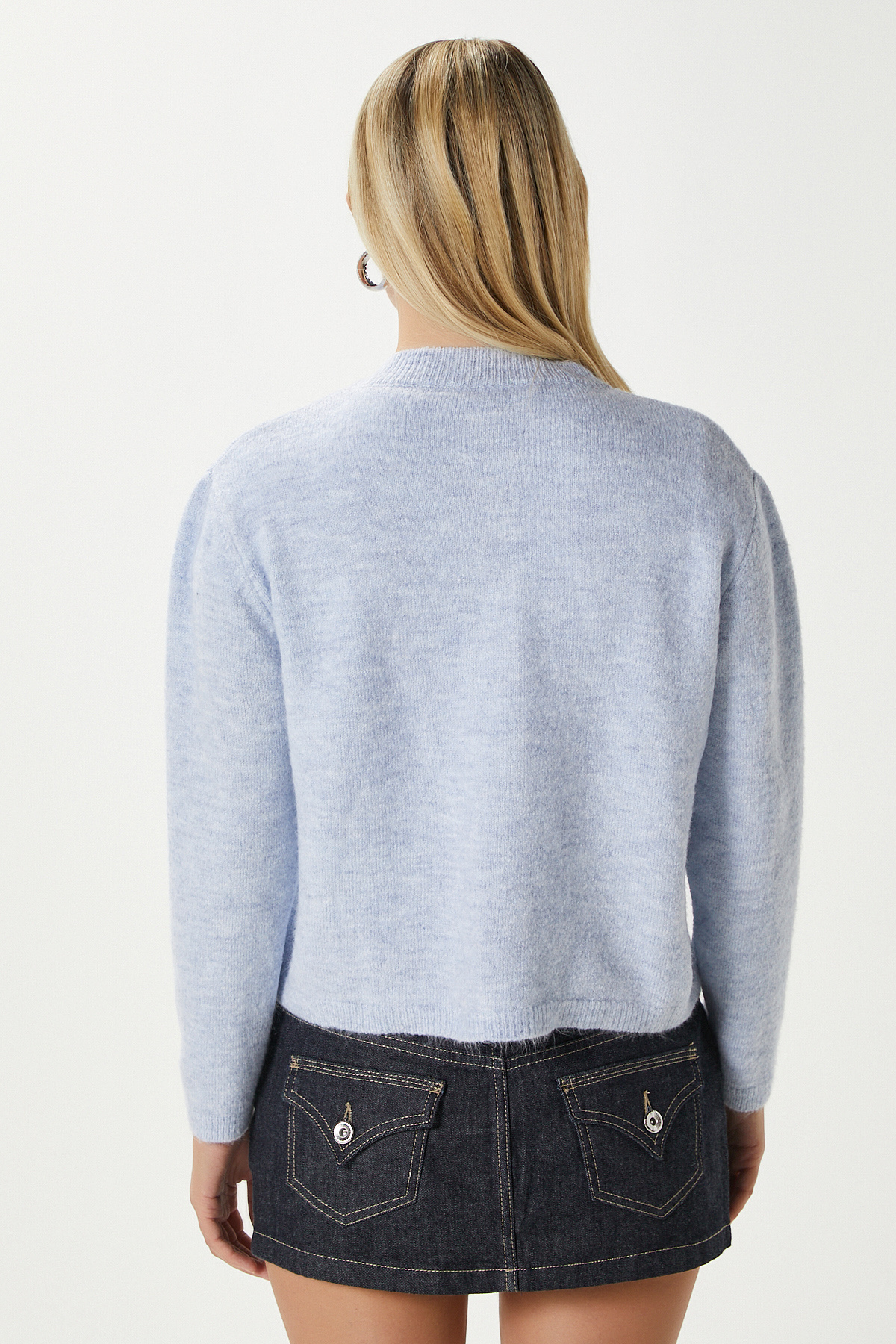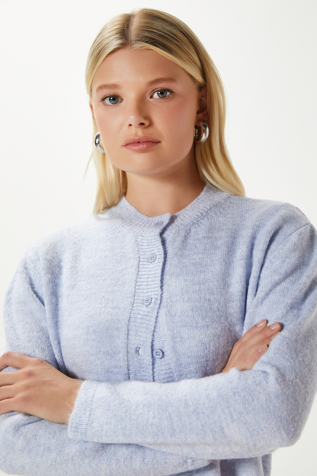 Kadın Nina Bisiklet Yaka Mavi Basic Hırka Kadın Nina Bisiklet Yaka Mavi Basic Hırka 1432 XL