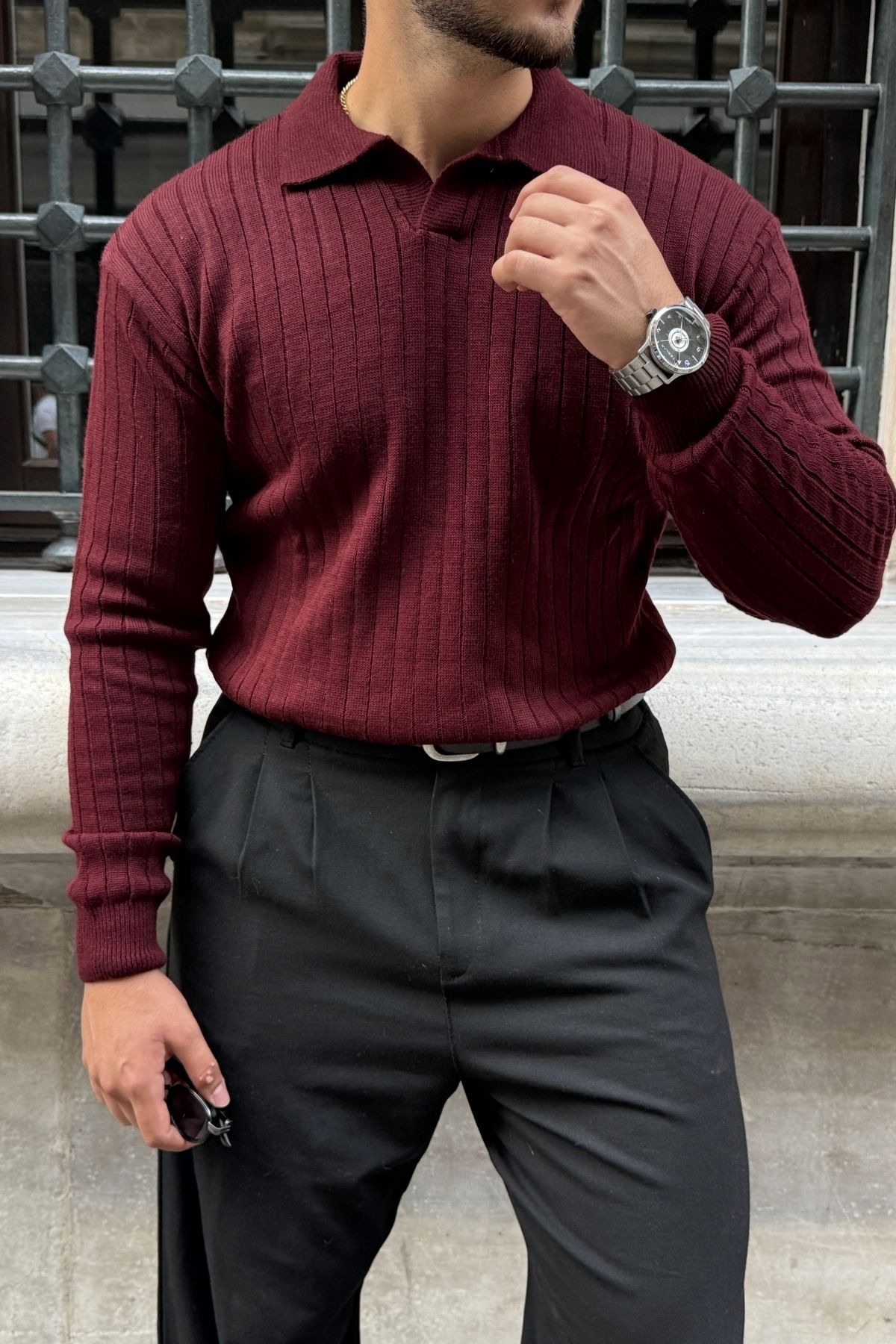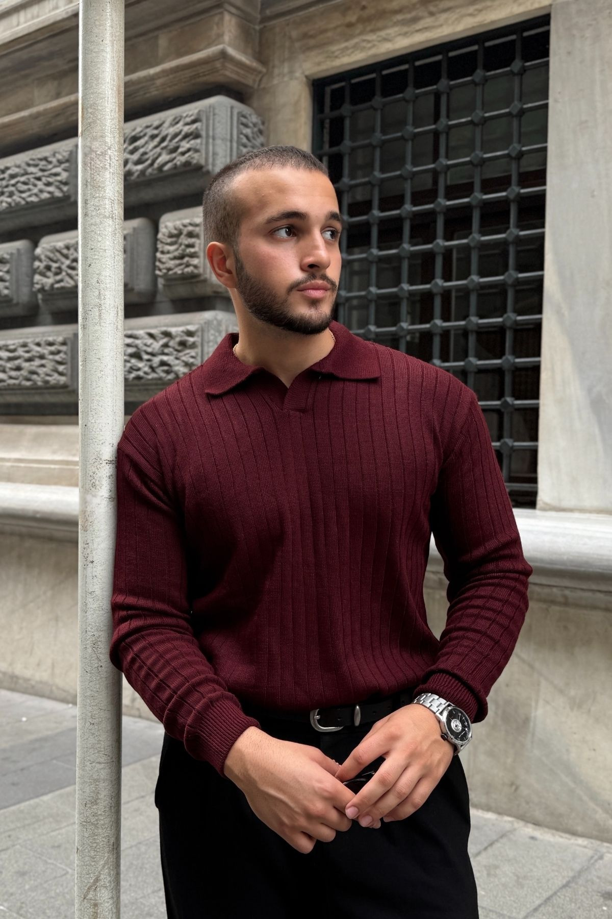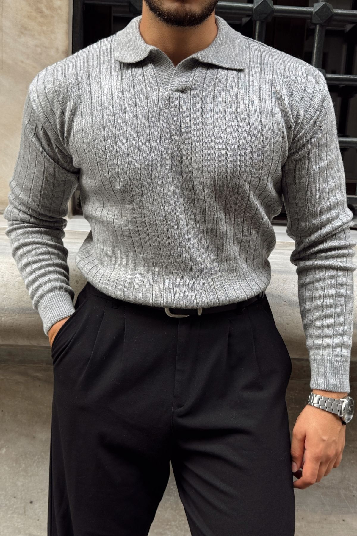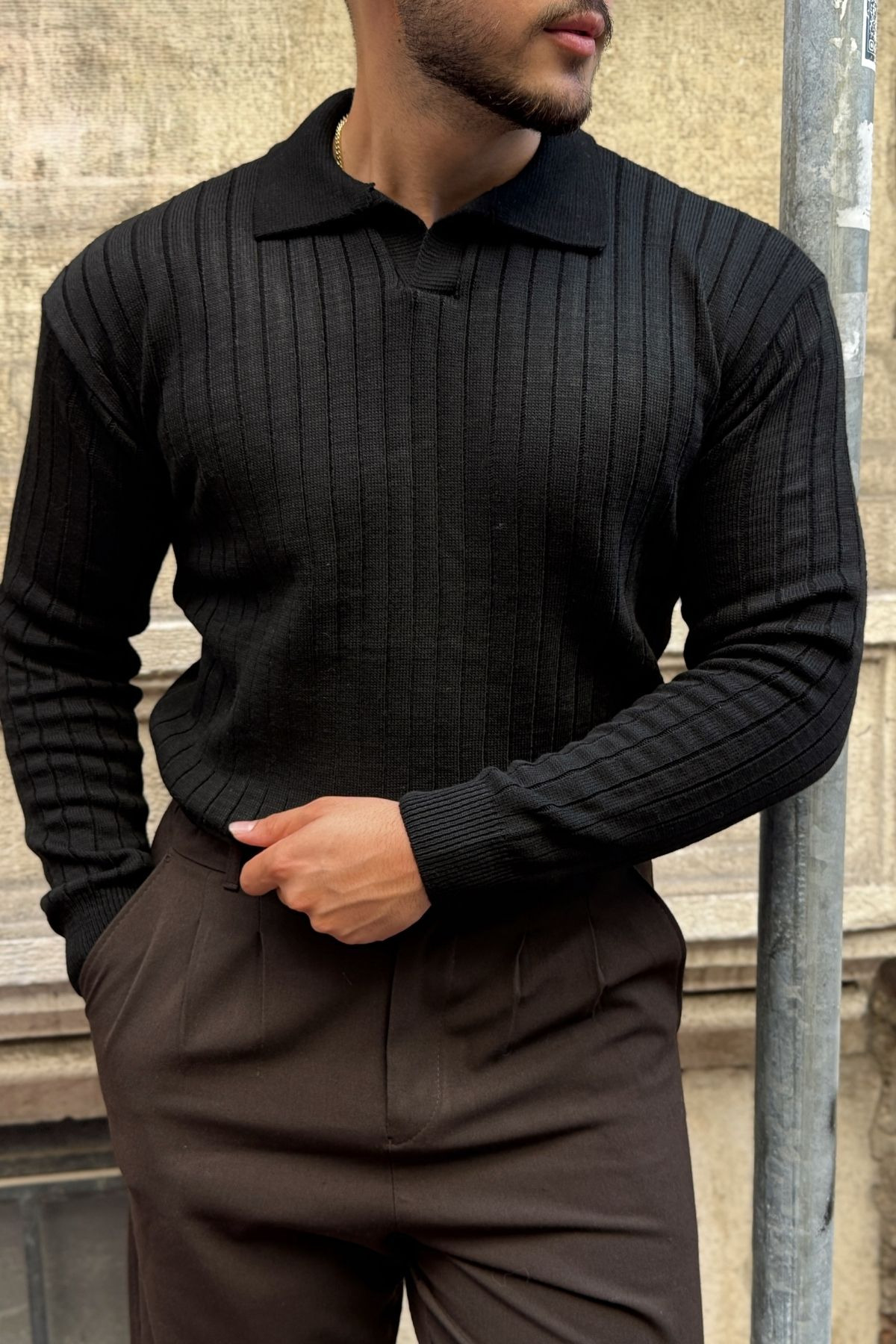 Kimi Fitilli Erkek Triko Polo Yaka Regular Kalıp Uzun Kollu Tişört Kimi Fitilli Erkek Triko Polo Yaka Regular Kalıp Uzun Kollu Tişört 11014 XL