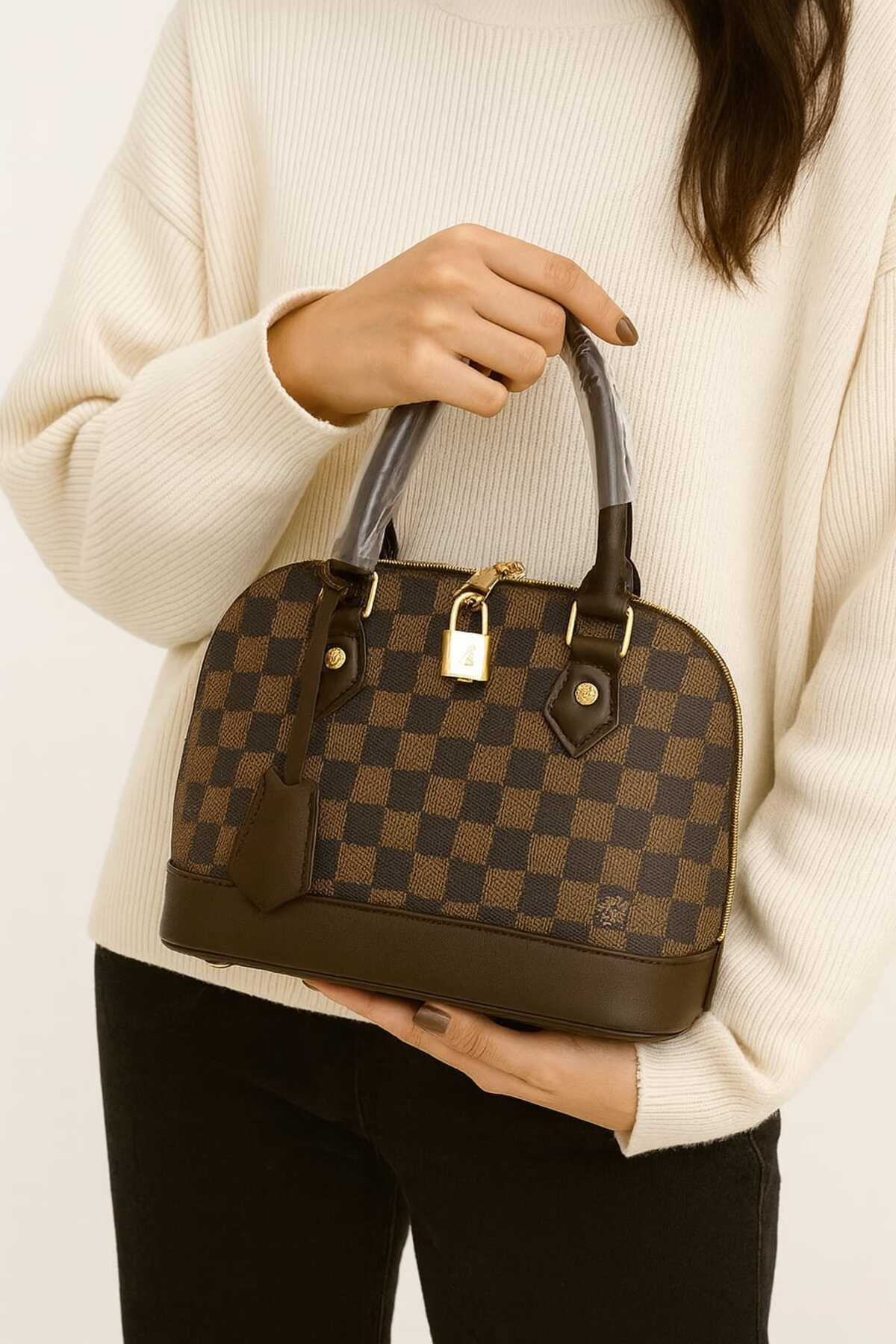 Kadın Kahverengi Desenli Omuz ve El Çantası Bej Detaylı Kadın Kahverengi Desenli Omuz ve El Çantası Bej Detaylı efes2034