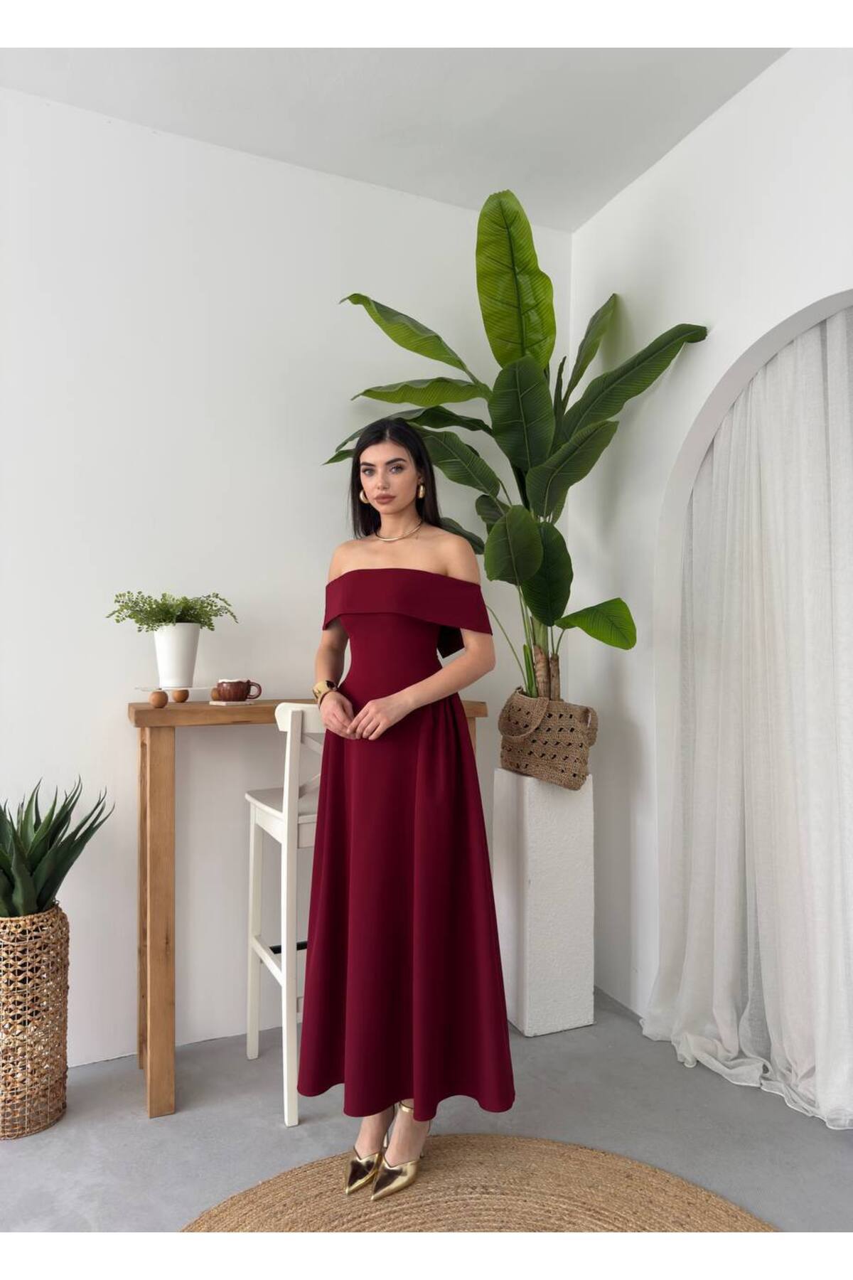 Atlas Kumaş Straplez Kloş Pileli Elbise Atlas Kumaş Straplez Kloş Pileli Elbise BÖ0031 L