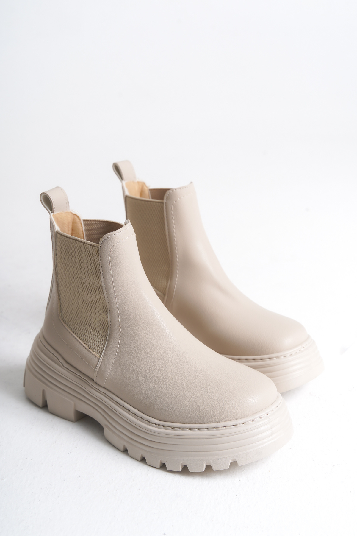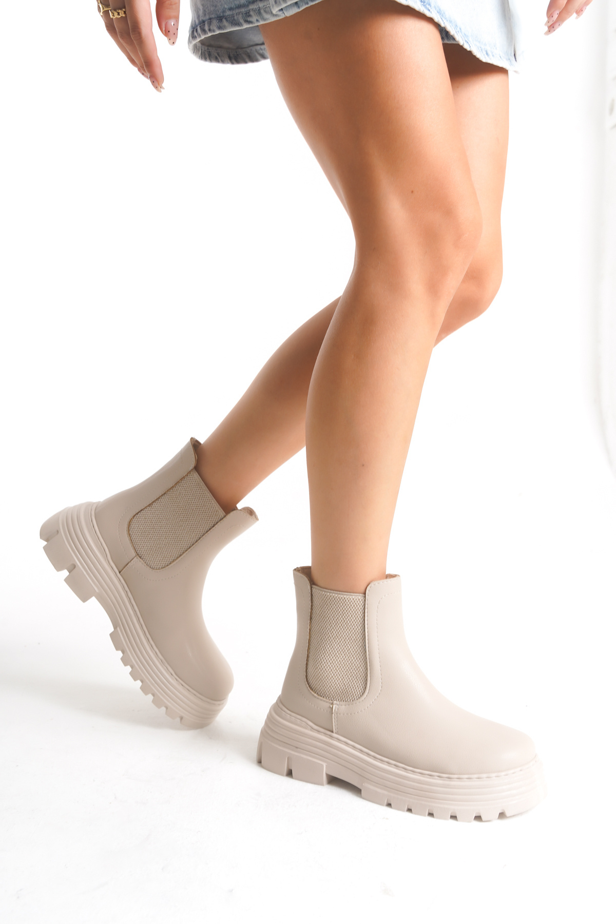 Kadın Yeni Sezon Düz Lastikli Bej Günlük Rahat Kalıp Çizme Kadın Yeni Sezon Düz Lastikli Bej Günlük Rahat Kalıp Çizme frkn06 40