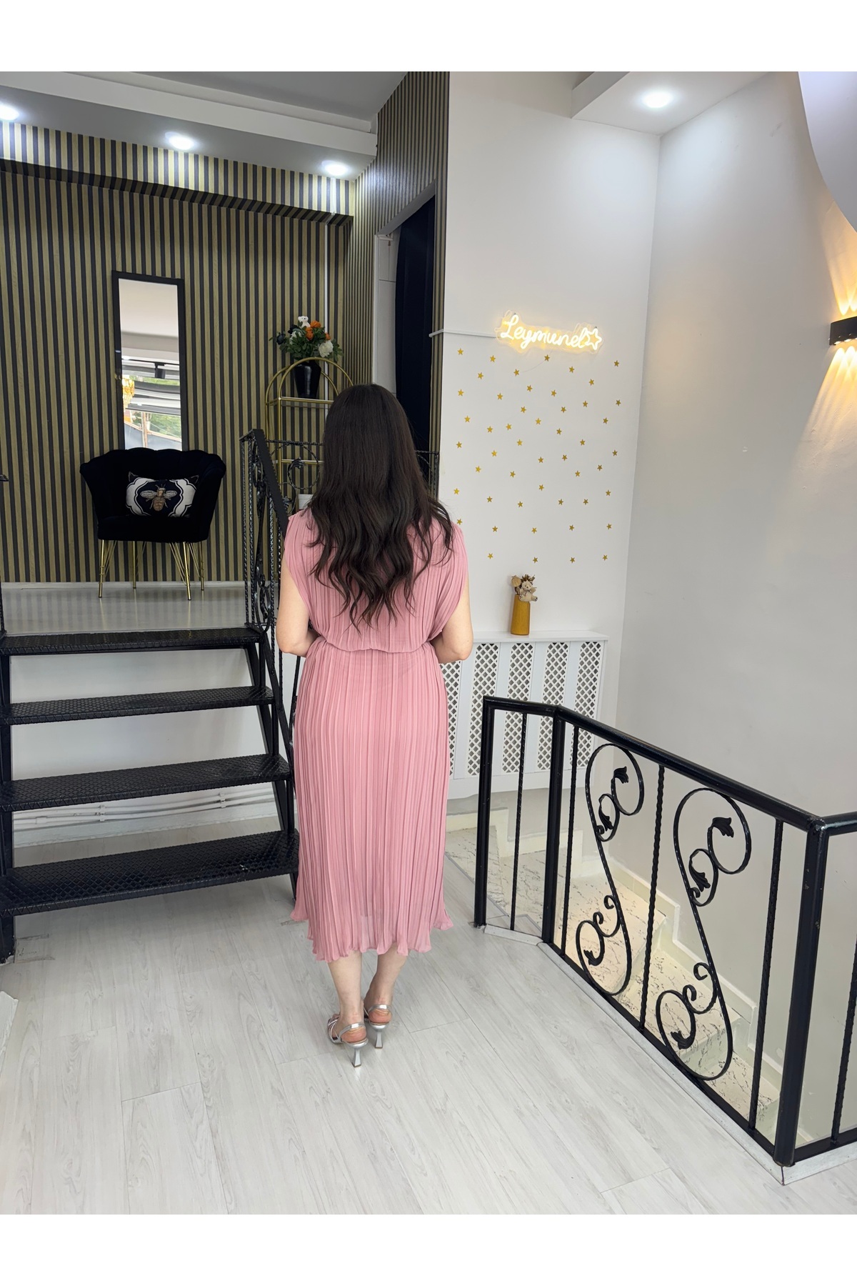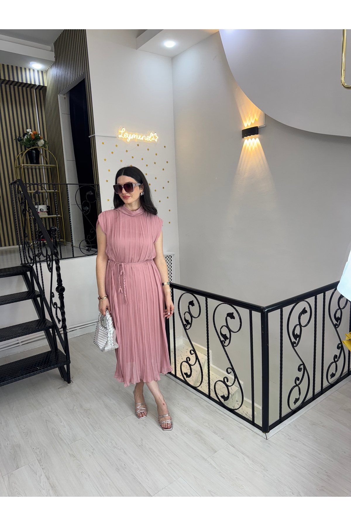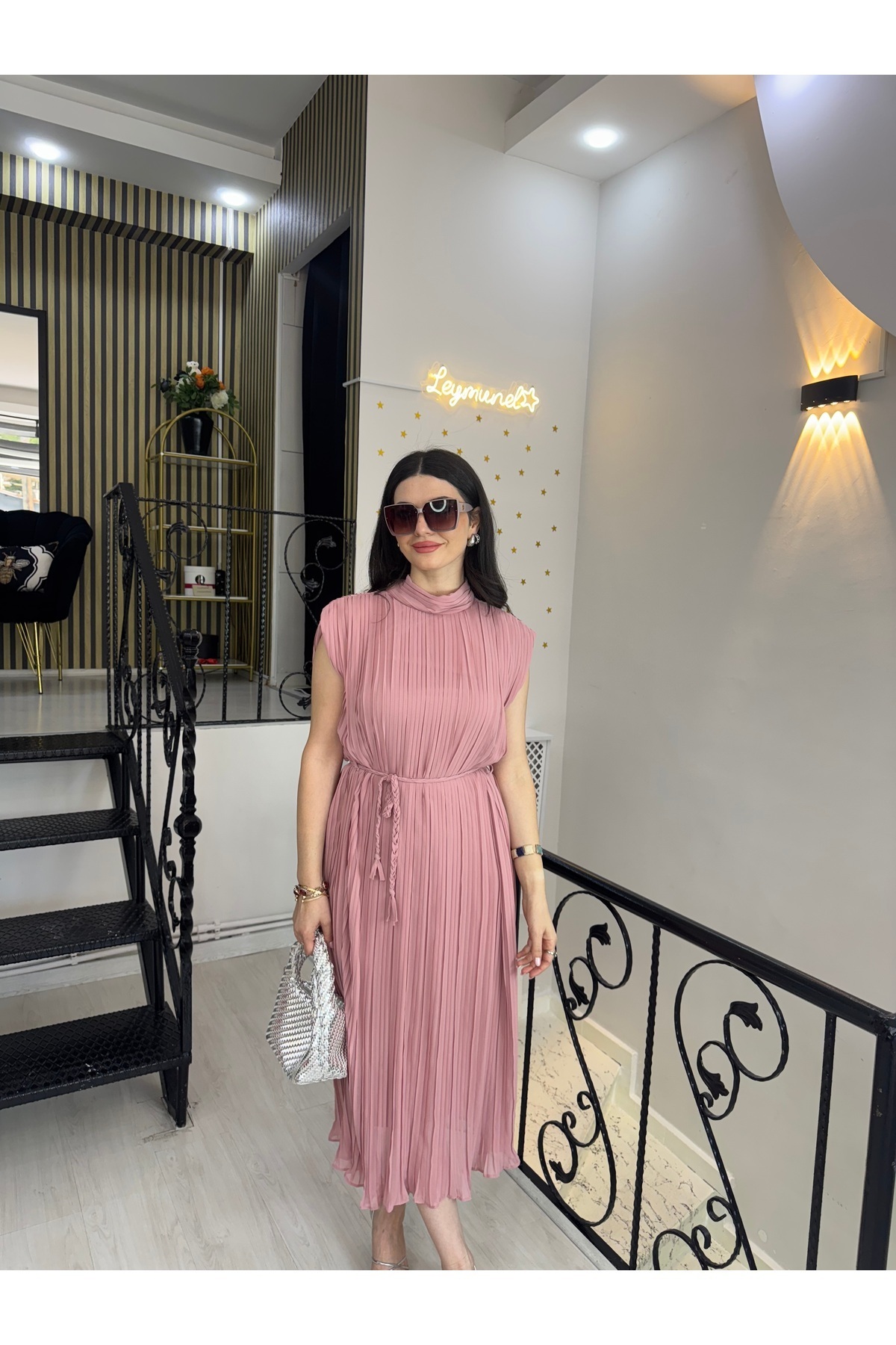 Pembe gül kurusu boğazlı belden bağcıklı astarlı tül uzun elbise Pembe gül kurusu boğazlı belden bağcıklı astarlı tül uzun elbise LLB8888863 XL