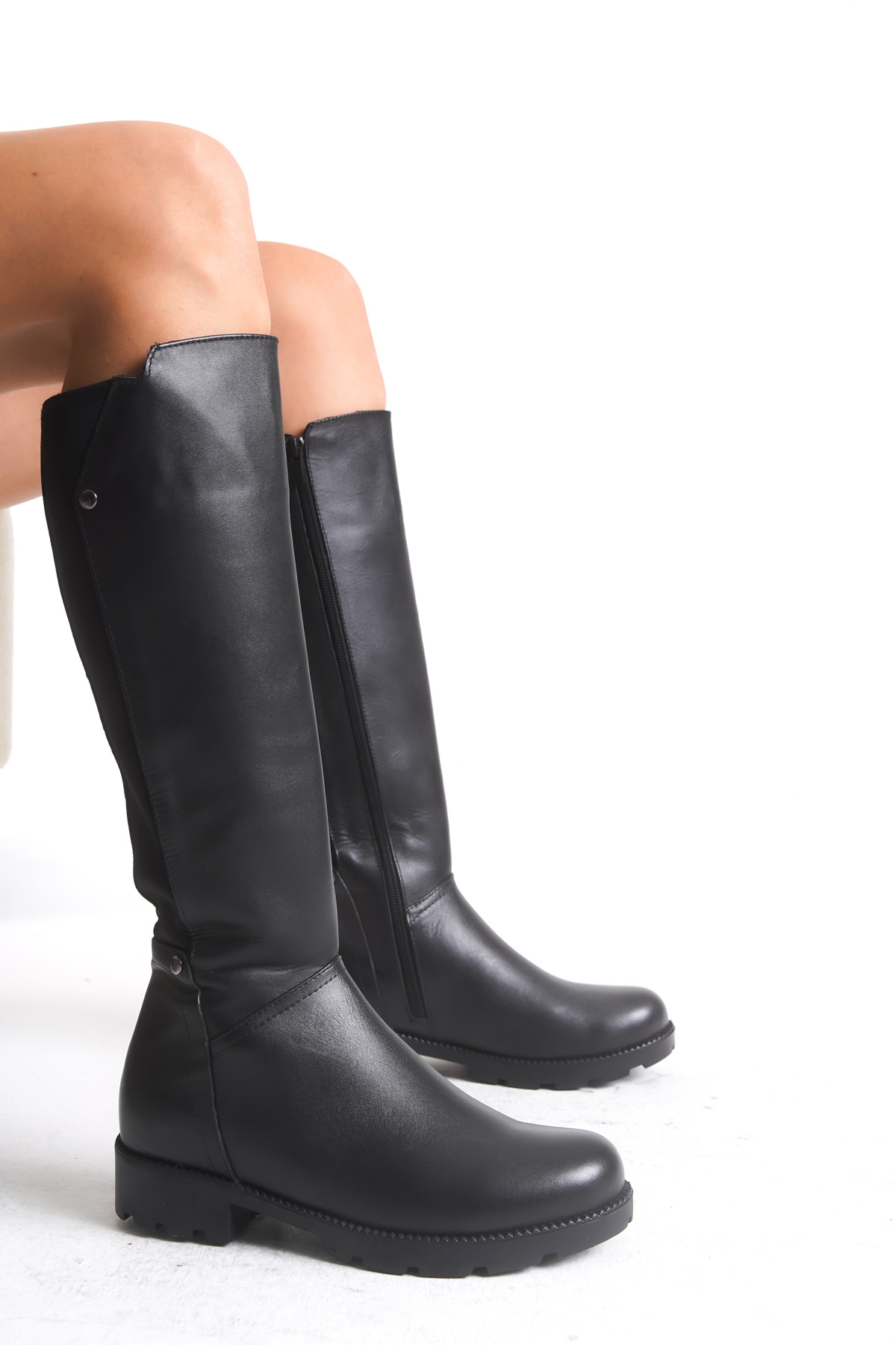 Hakiki Deri Siyah Lastikli Şık Tarz Günlük Çizme Hakiki Deri Siyah Lastikli Şık Tarz Günlük Çizme dgn5780 40