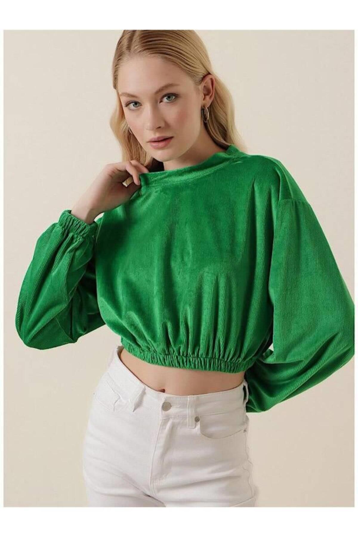 Amy Kadife Crop Bluz Yeşil Amy Kadife Crop Bluz Yeşil TYCB43AE2F2FDDA7D5029ED00 42