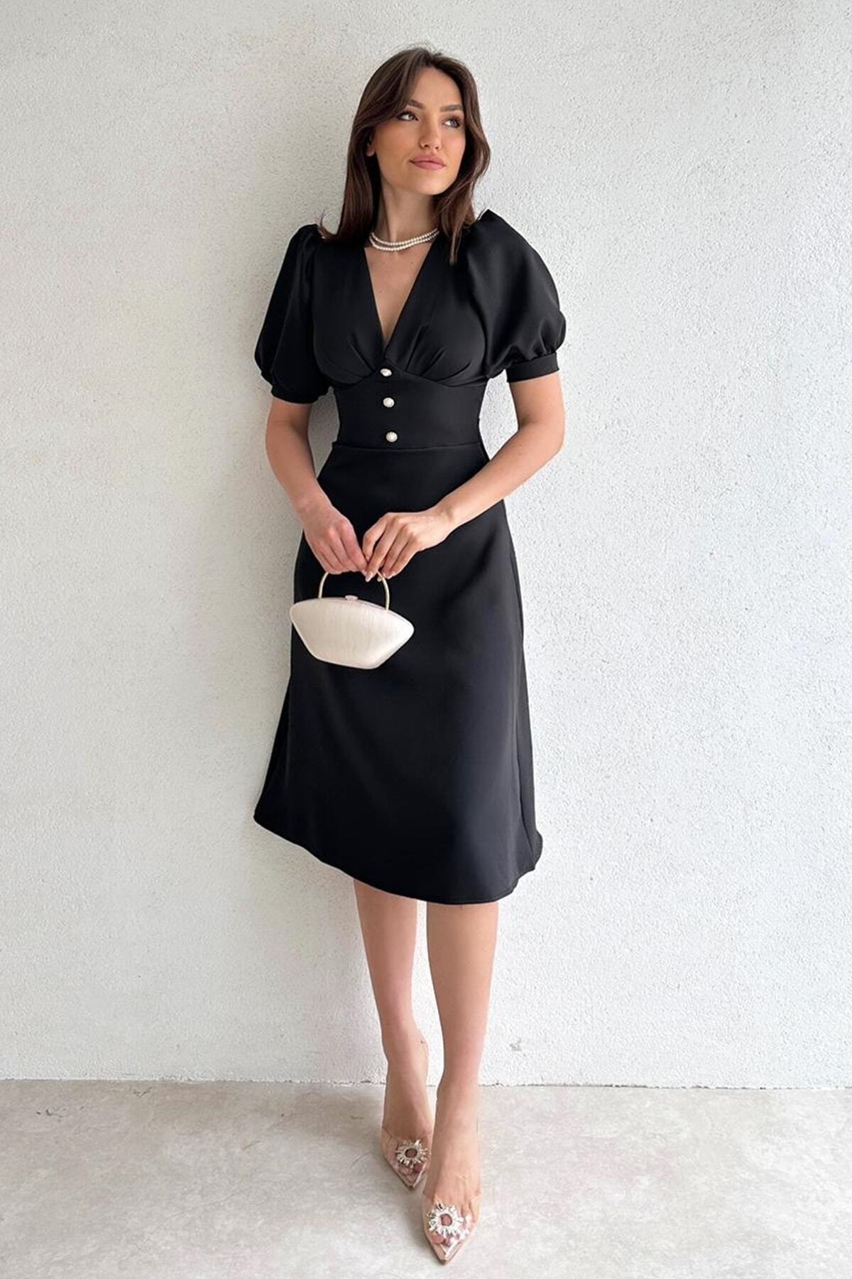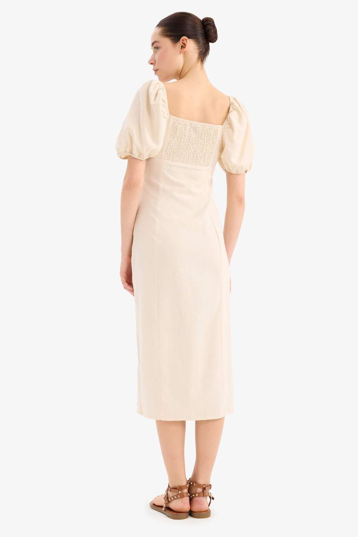 Kalp Yaka Yırtmaçlı Keten Karışımlı Kısa Kollu Midi Elbise C0941AX25SM Kalp Yaka Yırtmaçlı Keten Karışımlı Kısa Kollu Midi Elbise C0941AX25SM 42