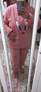 kadın pembe peluş pijama takımı kadın pembe peluş pijama takımı 1552 XL