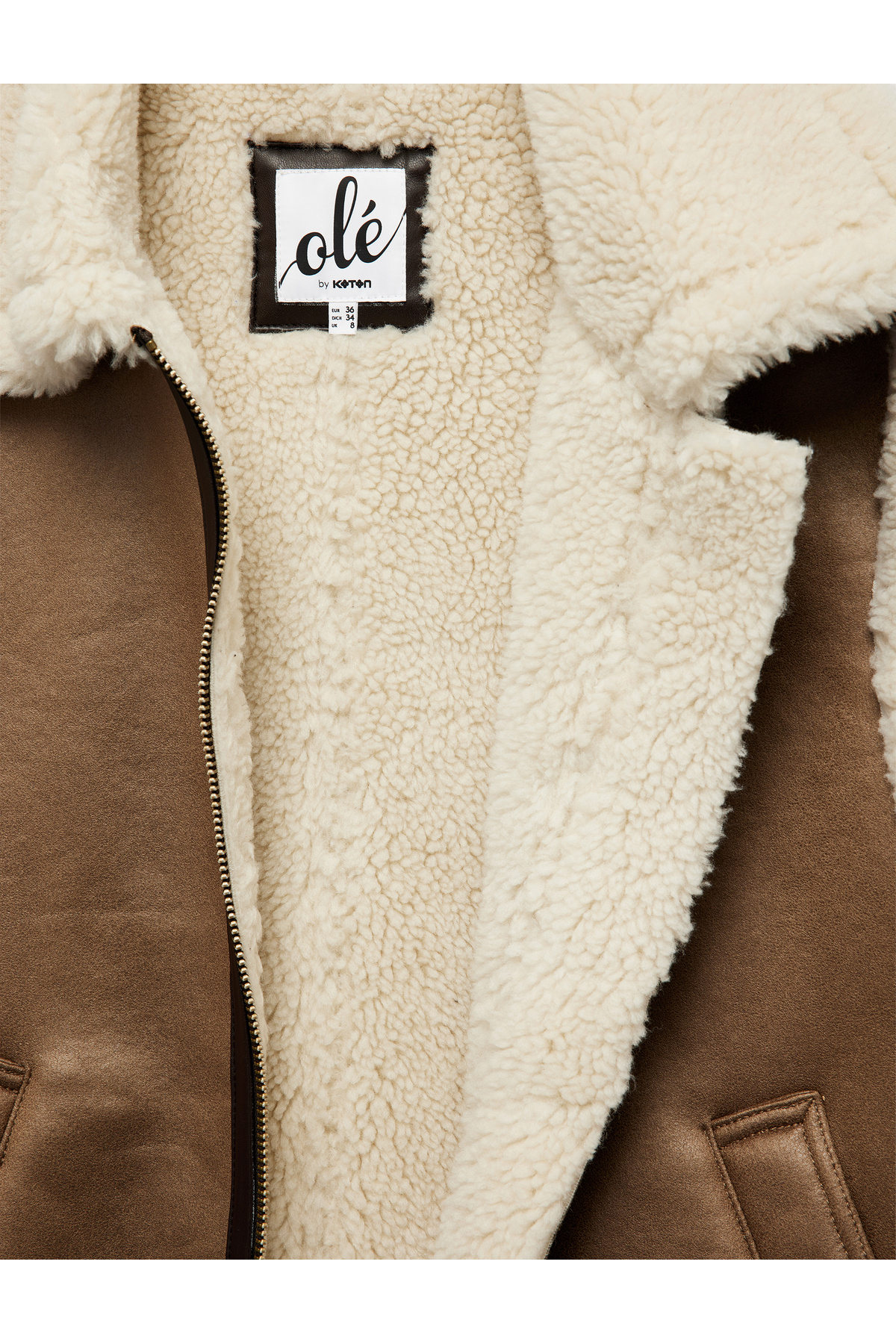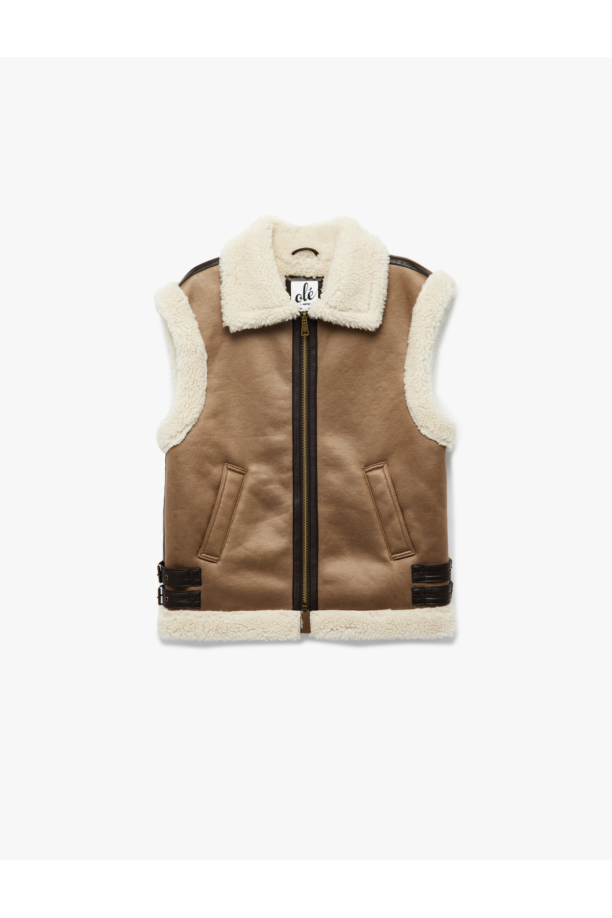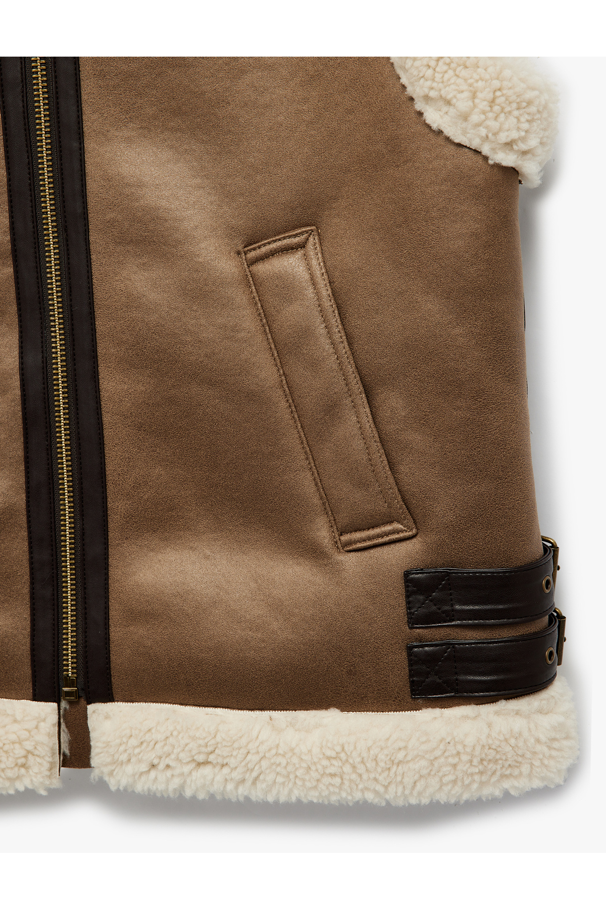 Peluş Şerpalı Yaka Süet Görünümlü Kolsuz Cepli Fermuarlı Oversize Yelek Peluş Şerpalı Yaka Süet Görünümlü Kolsuz Cepli Fermuarlı Oversize Yelek 6WAL20021IW 36