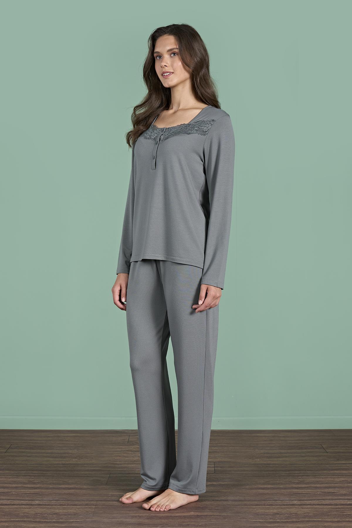 Kadın Yeşil Renk Dantel Detaylı Uzun Kollu Pijama Takımı C6T6N91 Kadın Yeşil Renk Dantel Detaylı Uzun Kollu Pijama Takımı C6T6N91 2XL
