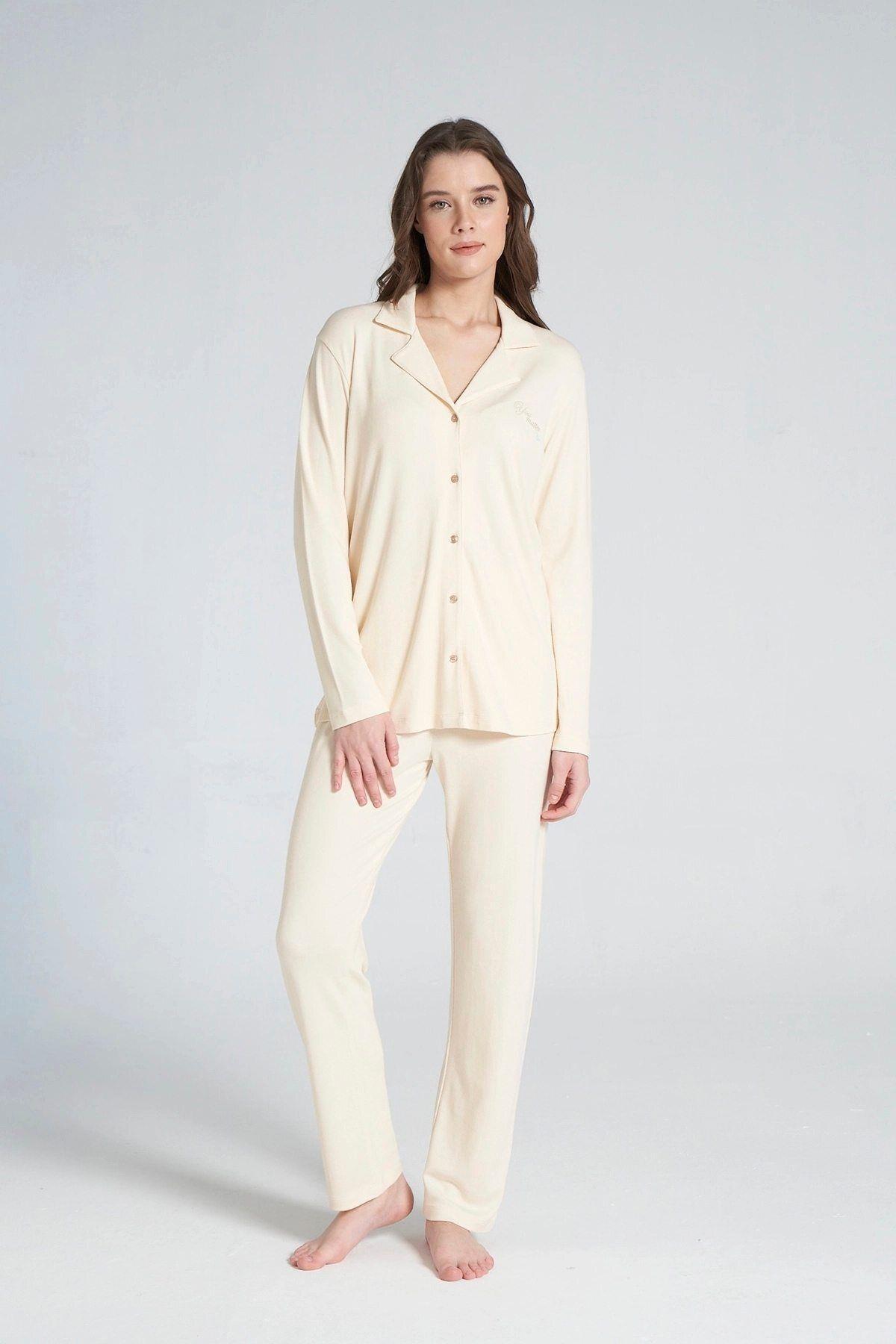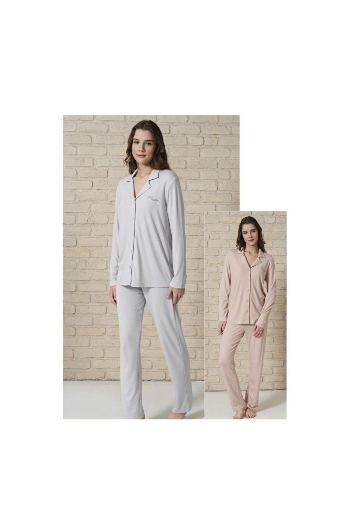 Kadın Vizon Renk Önden Düğmeli Uzun Kollu Gömlek Yaka Pijama Takımı C1T4N91 Kadın Vizon Renk Önden Düğmeli Uzun Kollu Gömlek Yaka Pijama Takımı C1T4N91 2XL