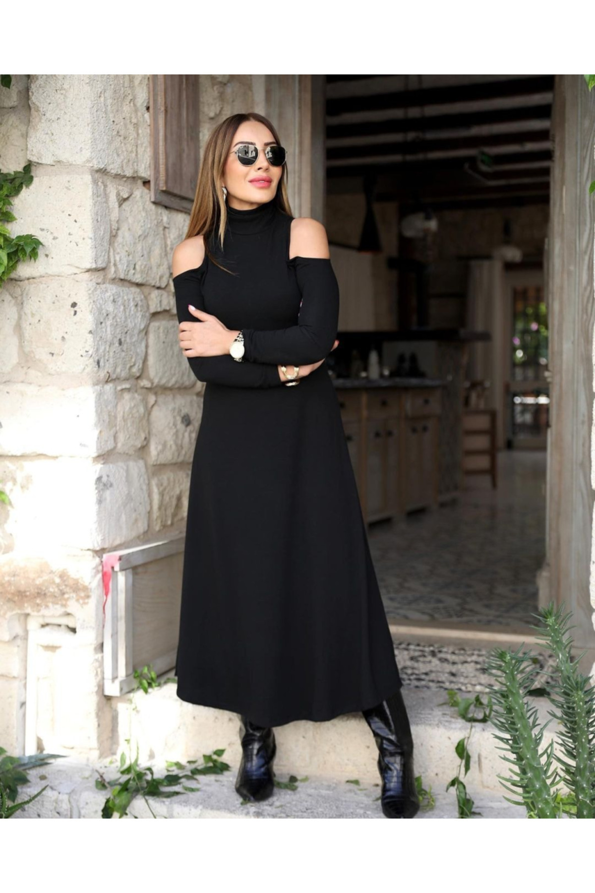 Yeni Sezon Kadın Omuz Açık Balıkçı Yaka Elbise Janjanlı Krep Kumaş Yeni Sezon Kadın Omuz Açık Balıkçı Yaka Elbise Janjanlı Krep Kumaş J-72168-MN 2XL-3XL