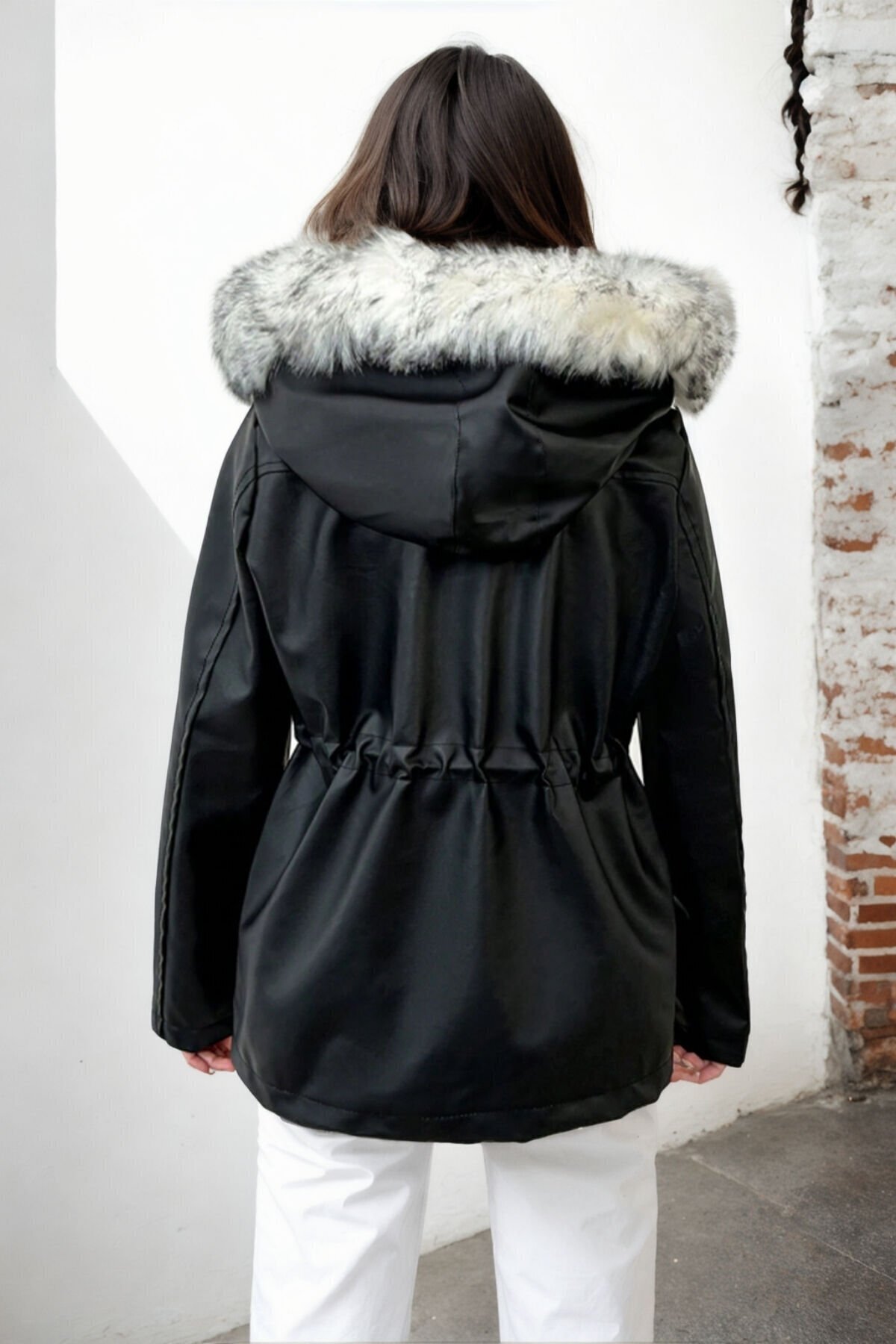 Kadın Deri Kapüşonlu Peluş Astarlı Mont KS2527 Kadın Deri Kapüşonlu Peluş Astarlı Mont KS2527 XL