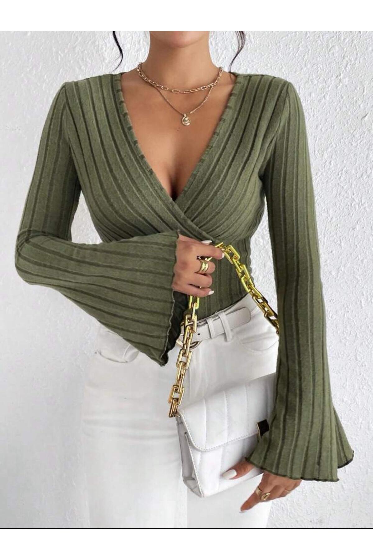 Kadın Çizgi Desen Pamuklu İspanyol Kol Detay Bluz Kadın Çizgi Desen Pamuklu İspanyol Kol Detay Bluz 0036 2XL