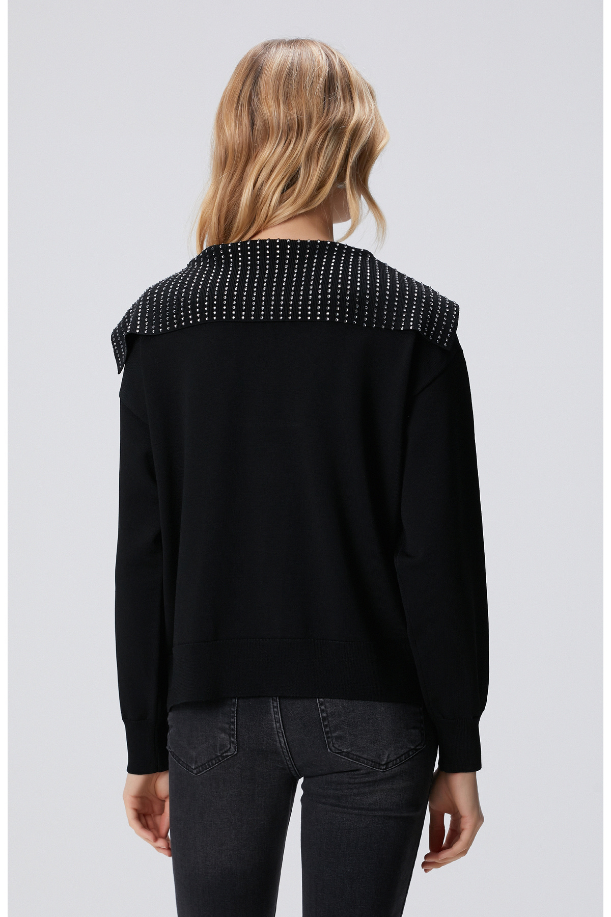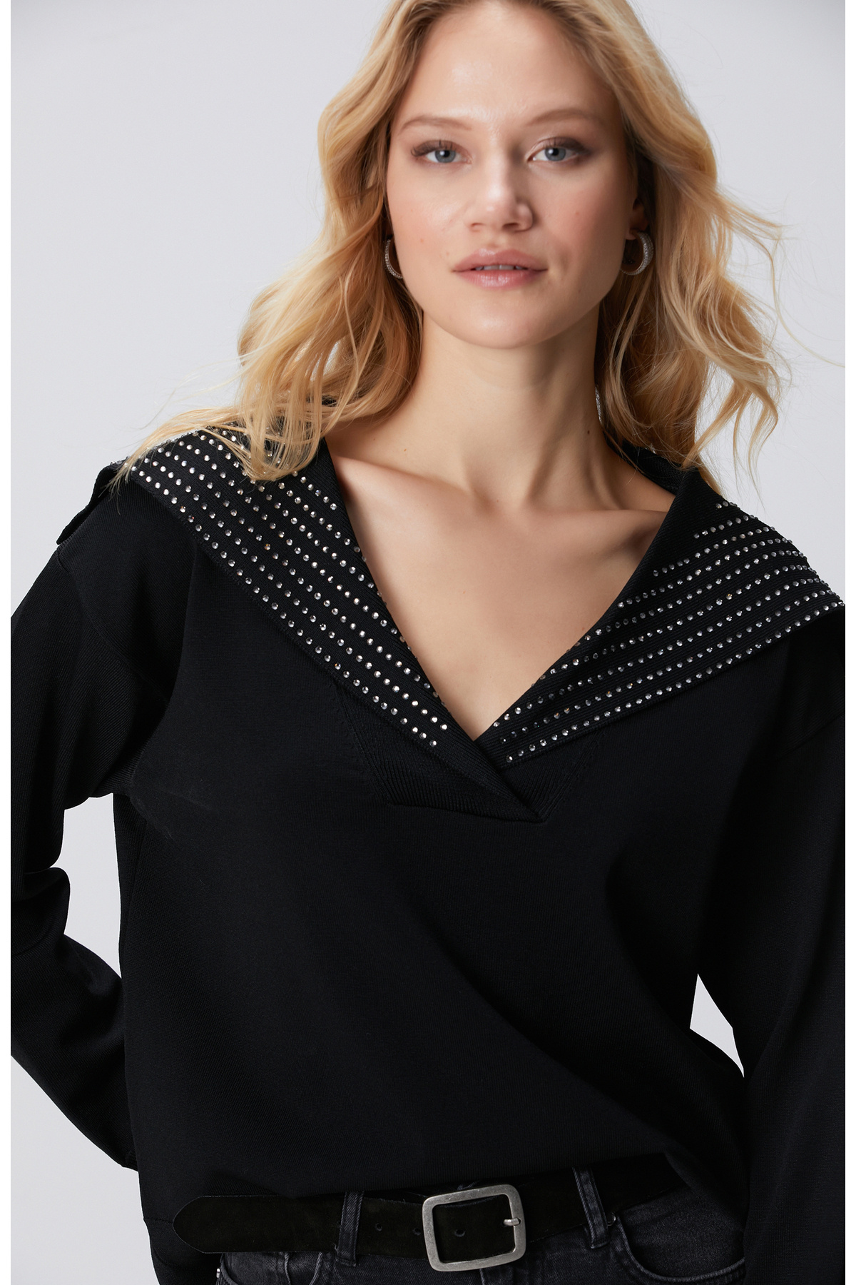Siyah Yaka Taş Baskılı Triko Kazak Siyah Yaka Taş Baskılı Triko Kazak 1096500 XL