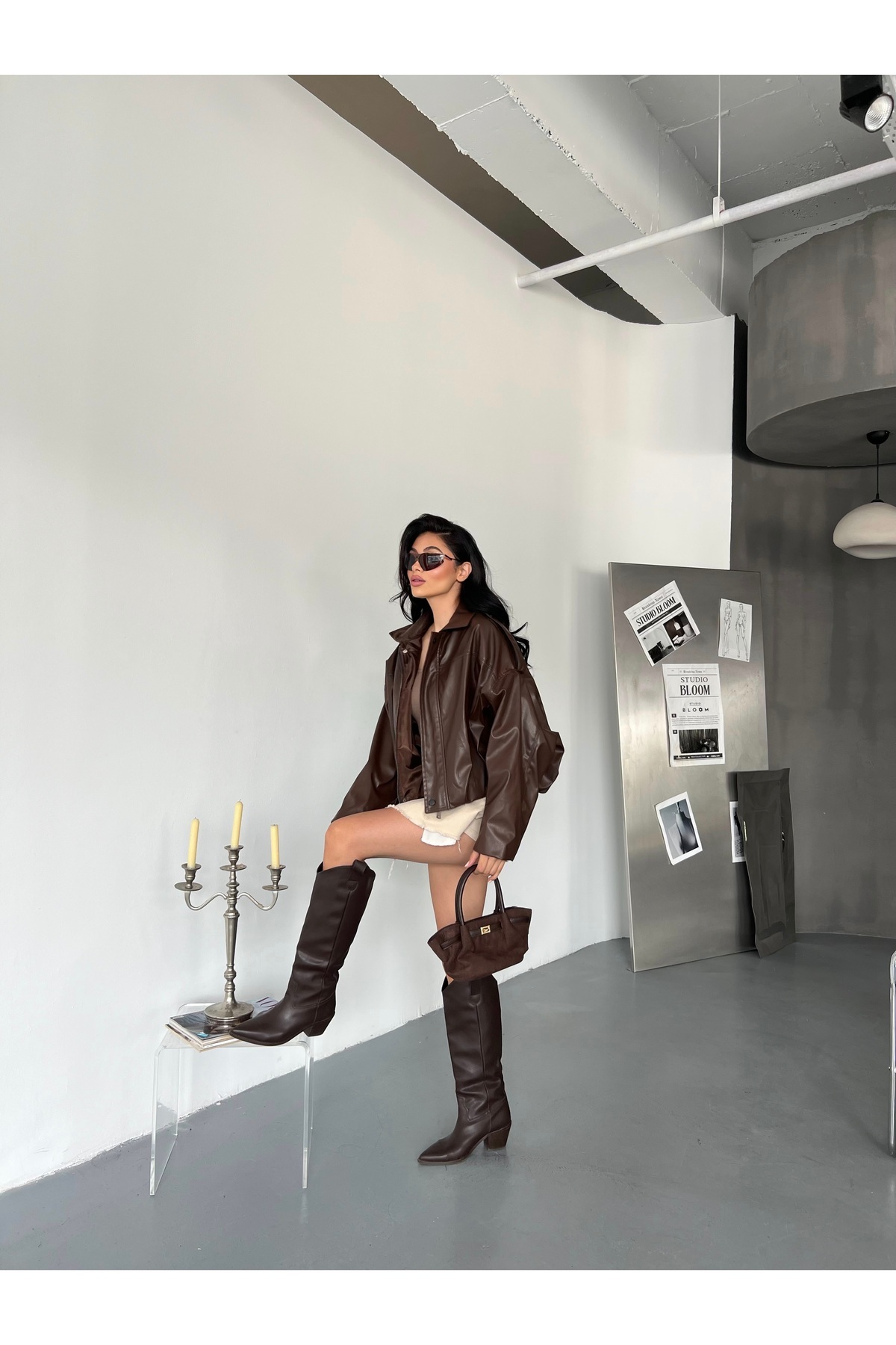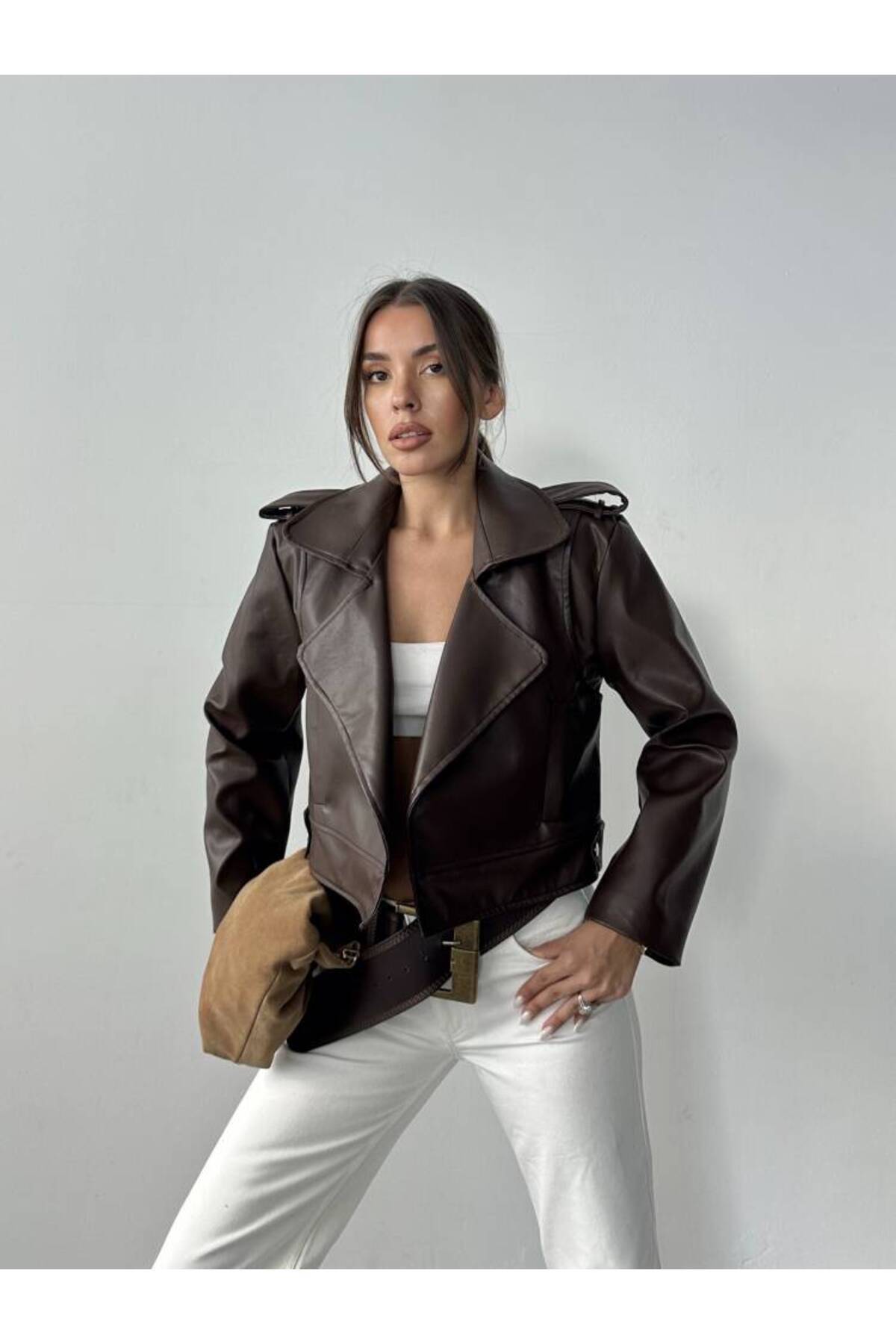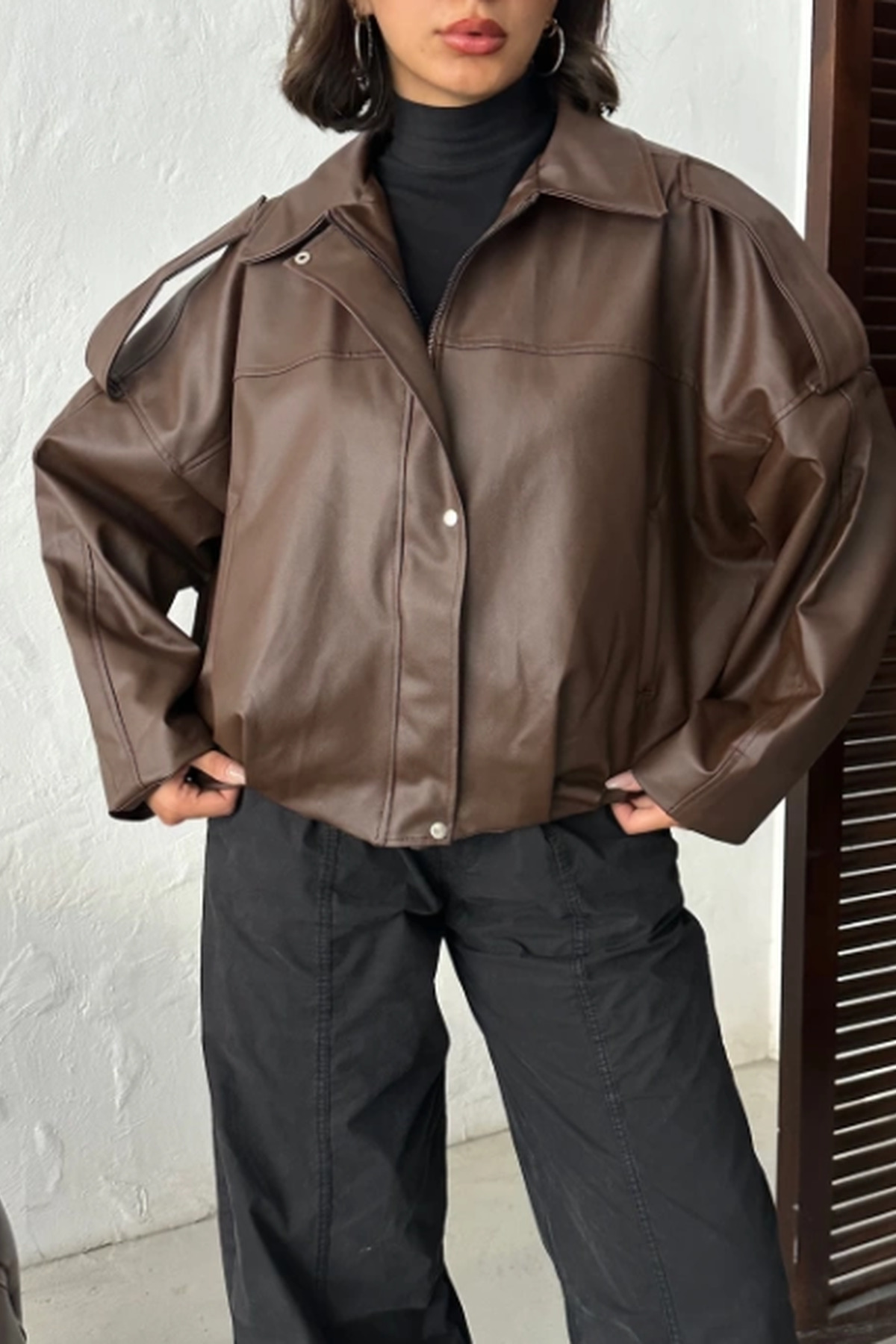 Kadın Oversize Bomber Deri Ceket Kadın Oversize Bomber Deri Ceket FM8501 Standart