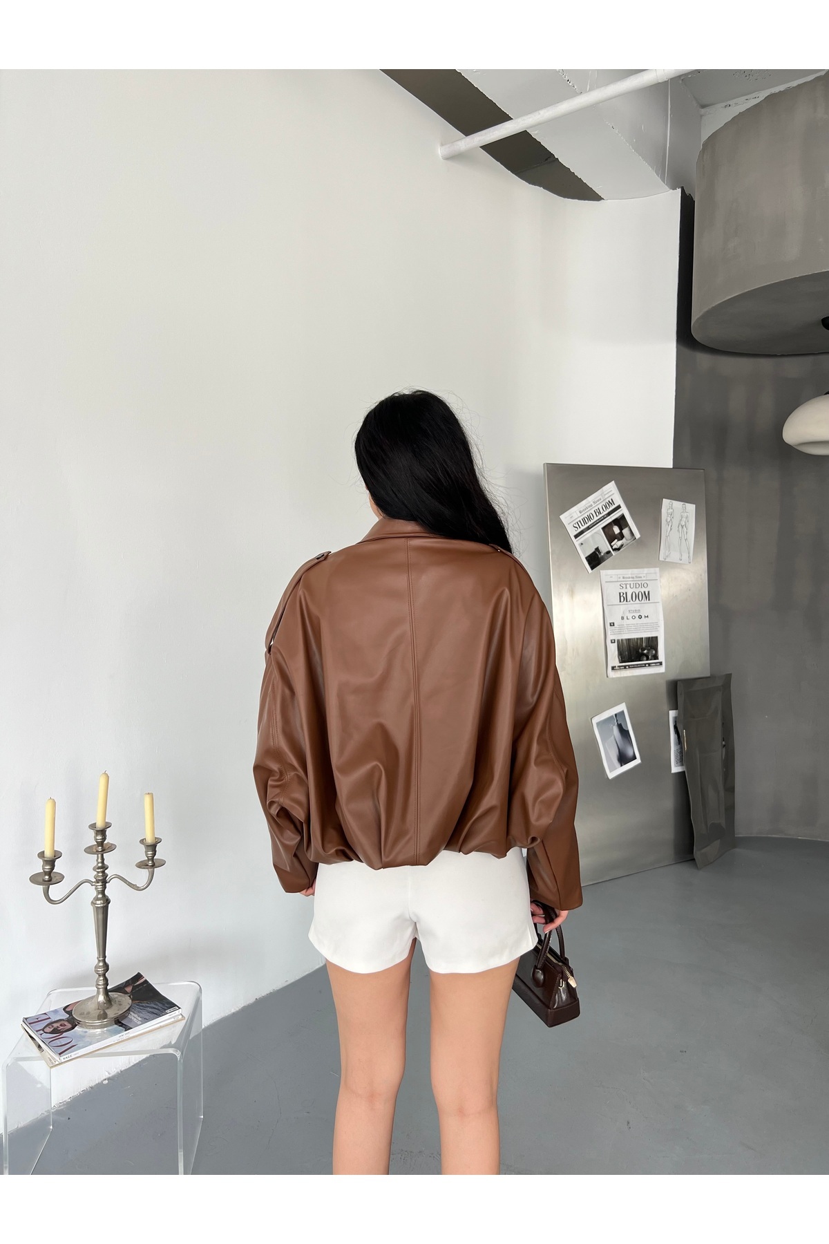 Kadın Oversize Bomber Deri Ceket Kadın Oversize Bomber Deri Ceket FM8501 Standart