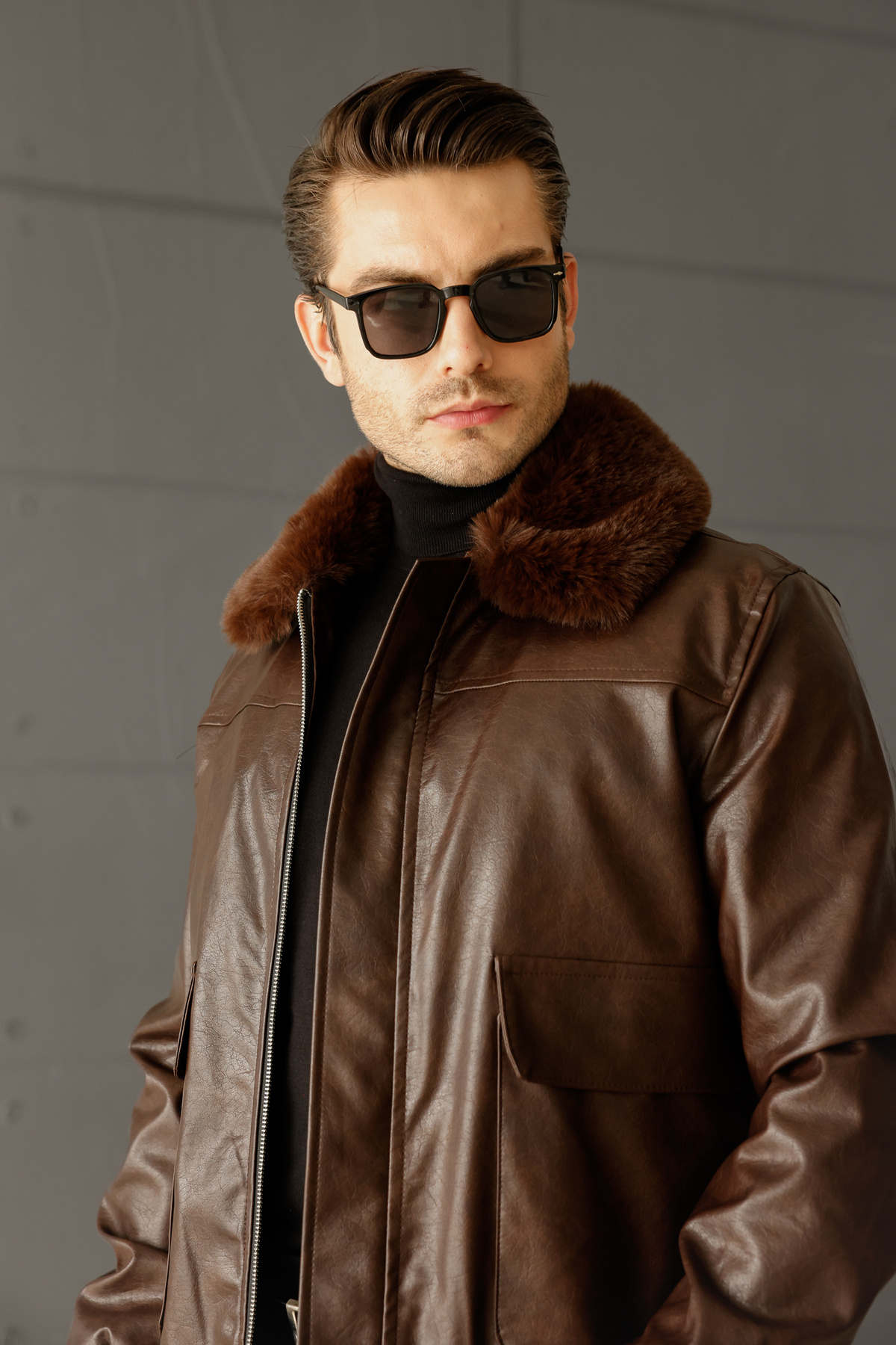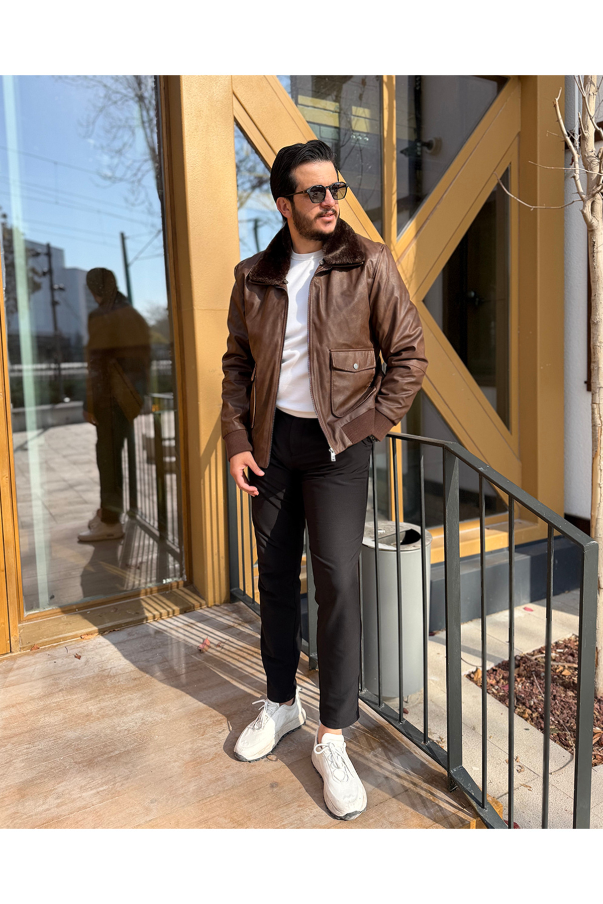 Erkek Yakası Kürklü Regular Premium Deri Ceket Erkek Yakası Kürklü Regular Premium Deri Ceket 938 2XL