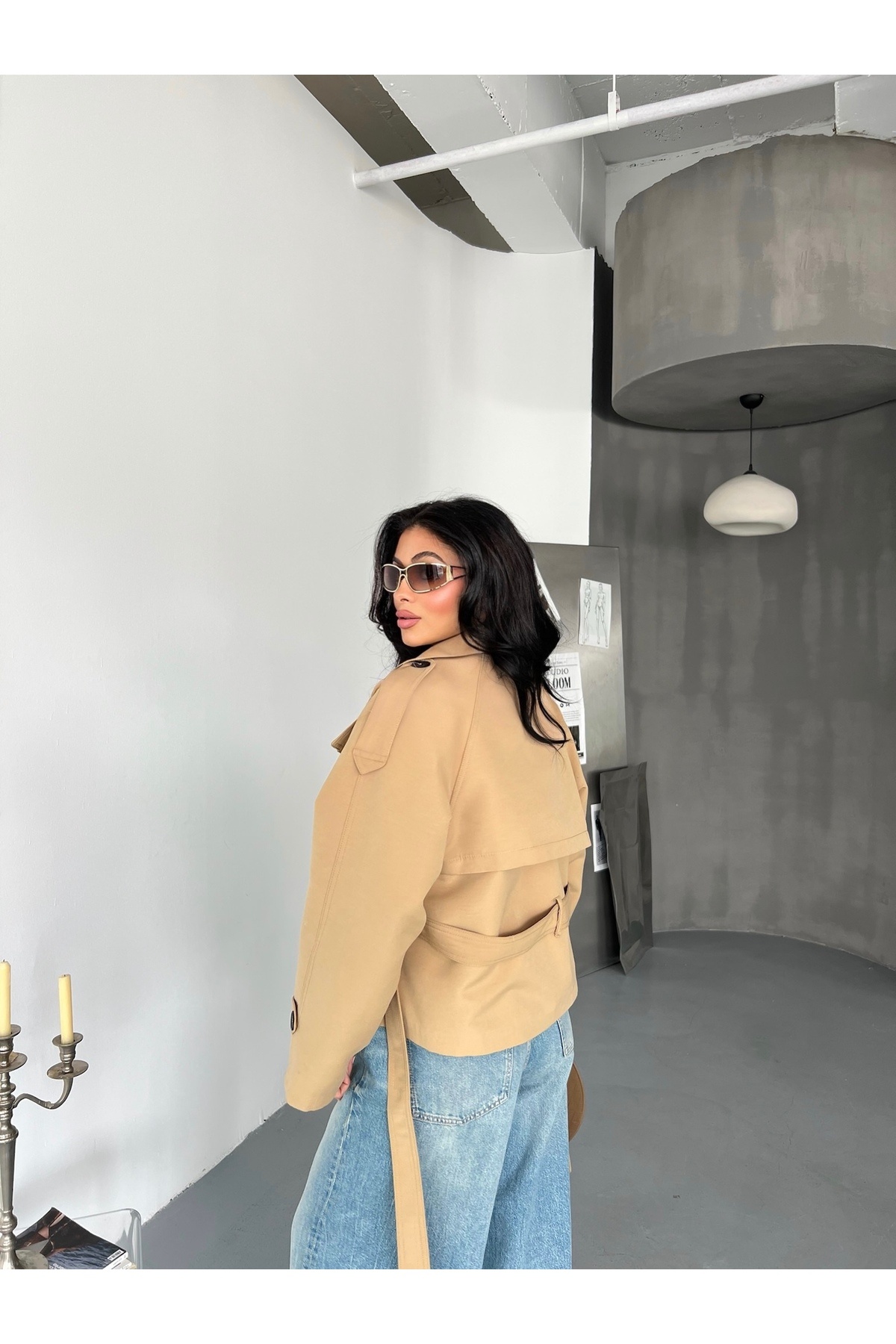 Kadın Bağlamalı Dik Yaka Trençkot Kadın Bağlamalı Dik Yaka Trençkot FM8503 L