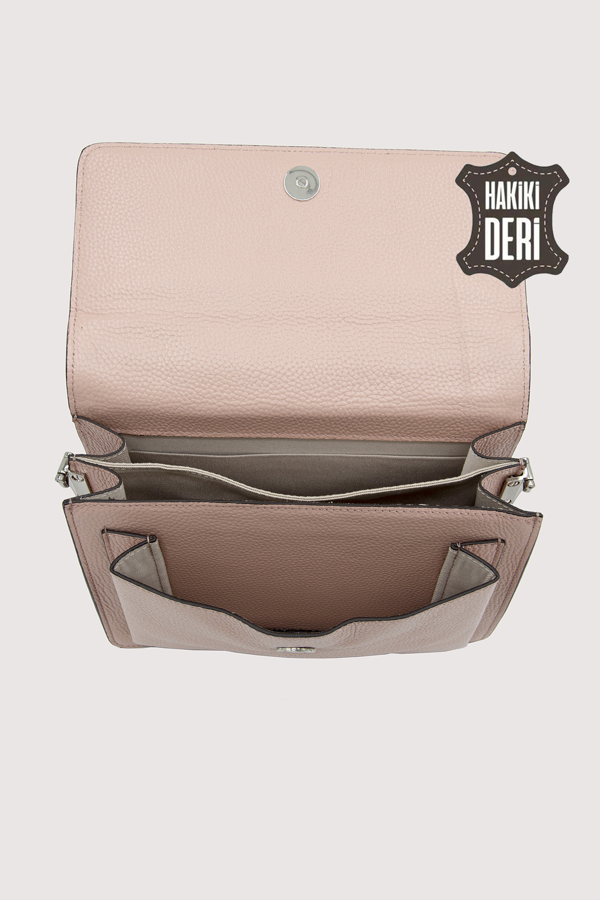 Hakiki Deri Kadın El Çantası Pudra SMR9022 Hakiki Deri Kadın El Çantası Pudra SMR9022 تک سایز