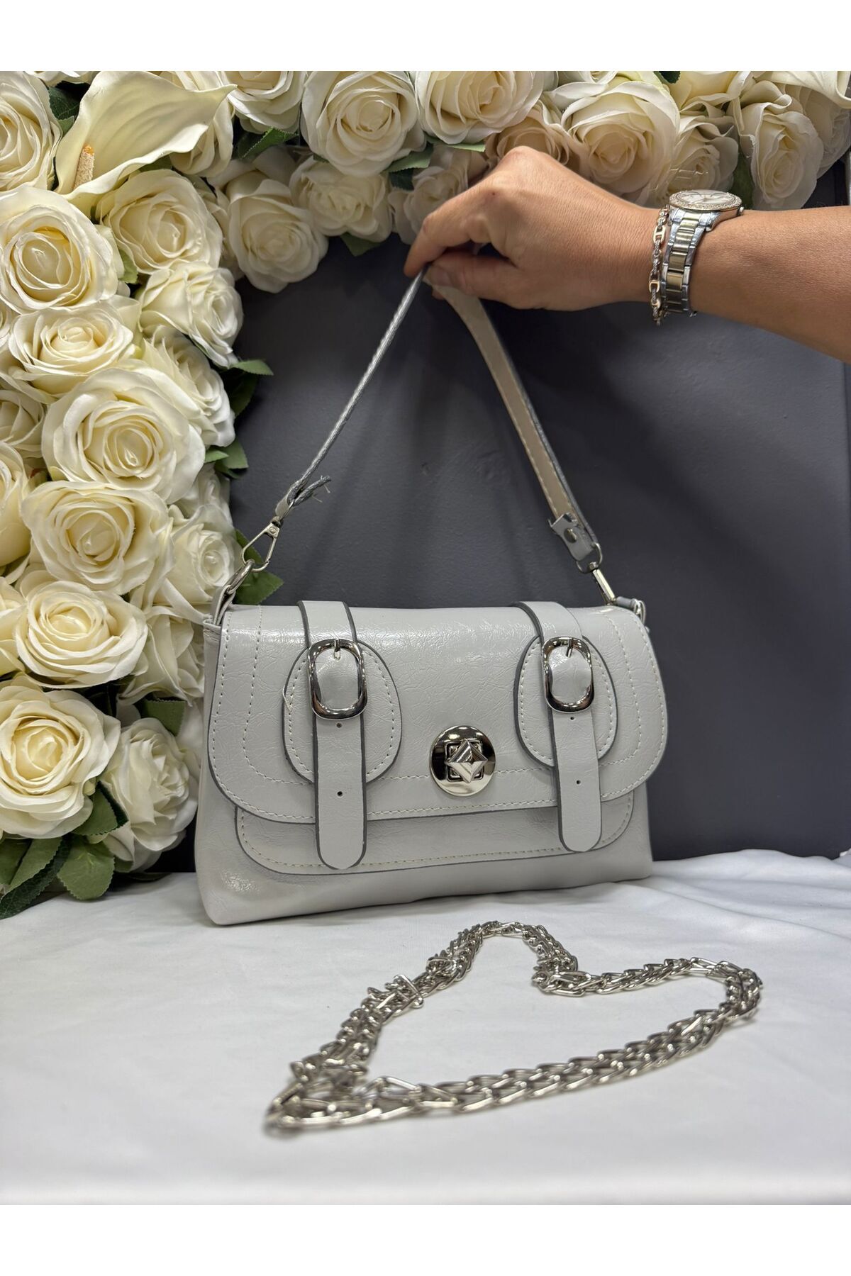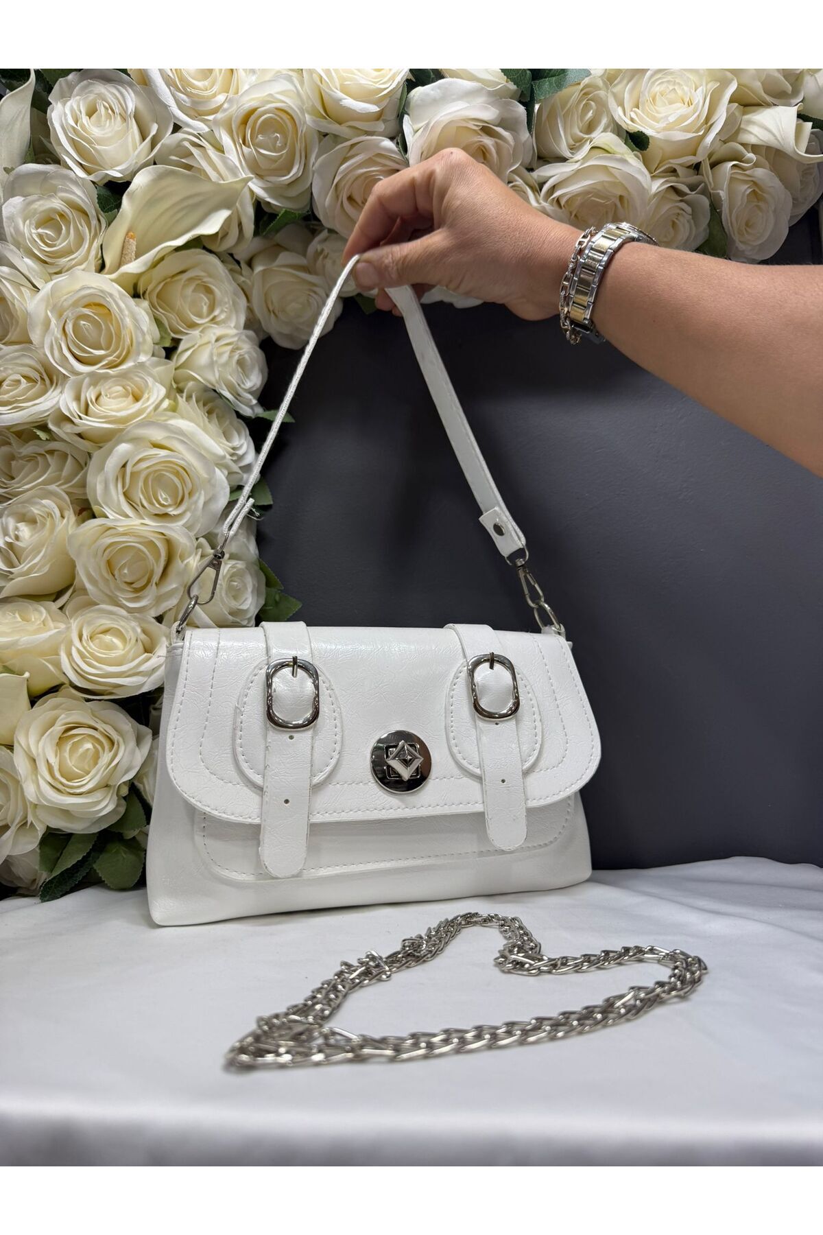 Kadın Kemer Detaylı Zincir Askılı Çanta Kadın Kemer Detaylı Zincir Askılı Çanta miossa00060 تک سایز