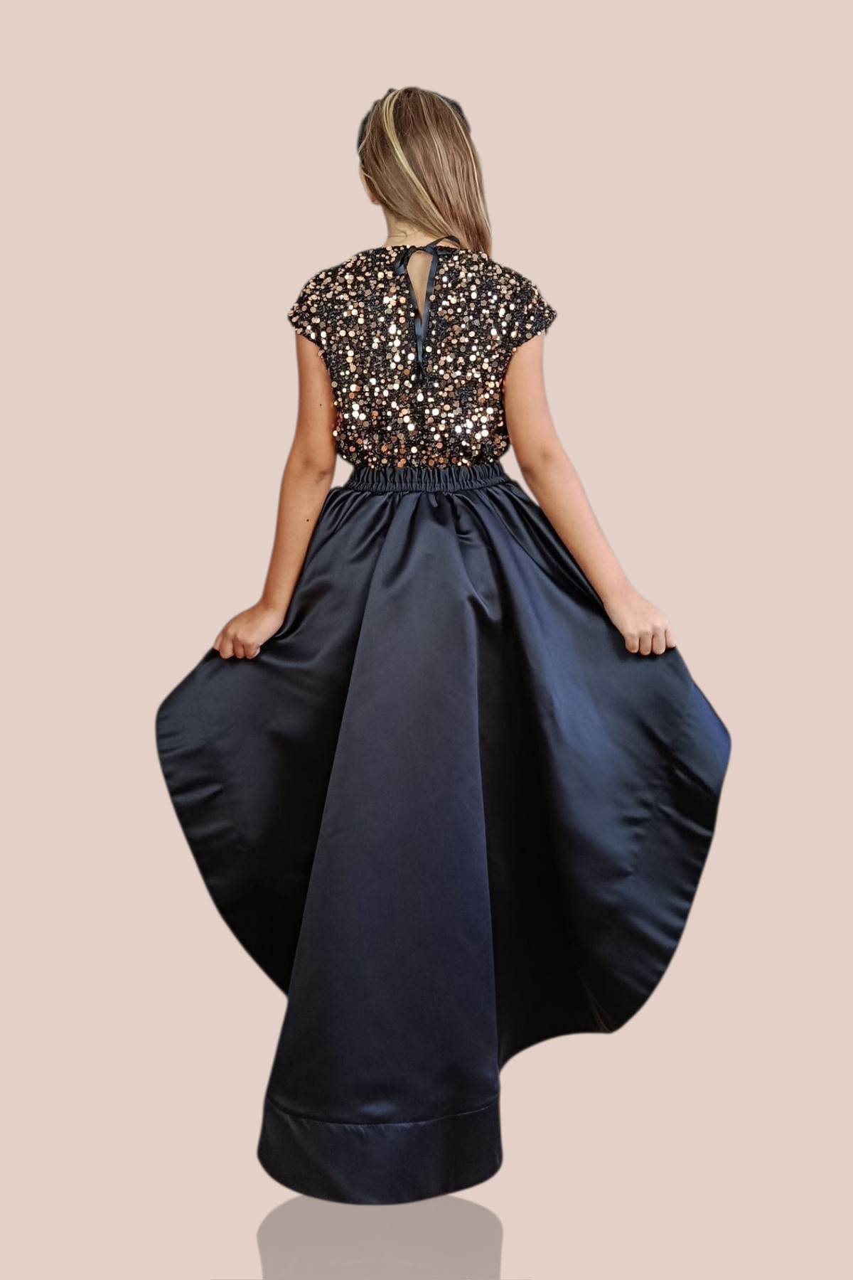 KIZ ÇOCUK SİYAH - ALTIN PULLU BLUZ SİYAH KUYRUKLU SATEN ETEK ABİYE TAKIM KIZ ÇOCUK SİYAH - ALTIN PULLU BLUZ SİYAH KUYRUKLU SATEN ETEK ABİYE TAKIM EB10053 15 YAŞ