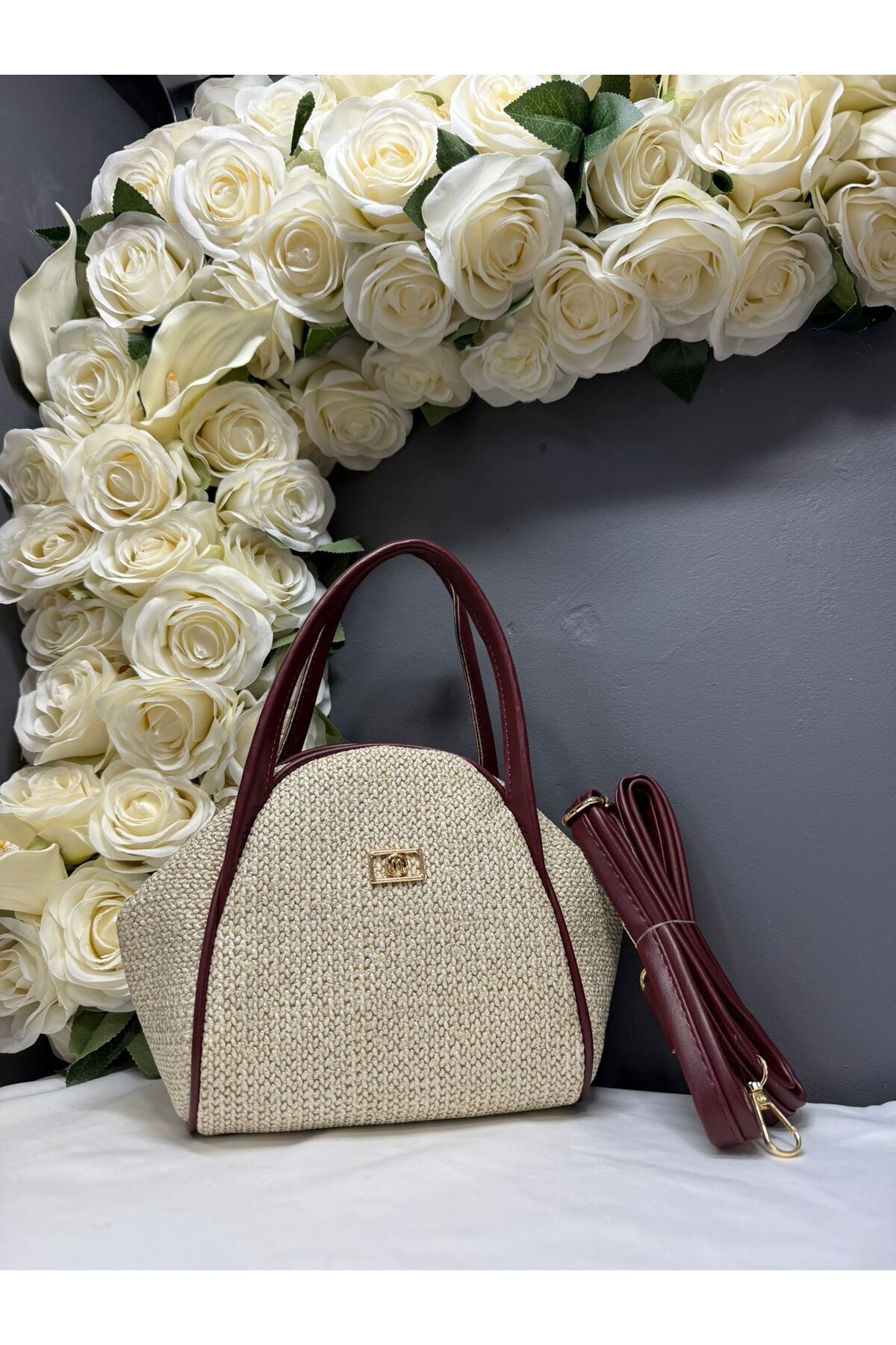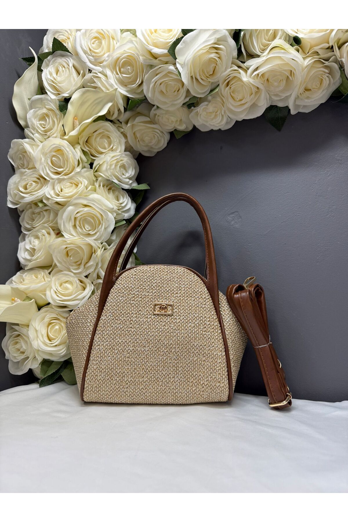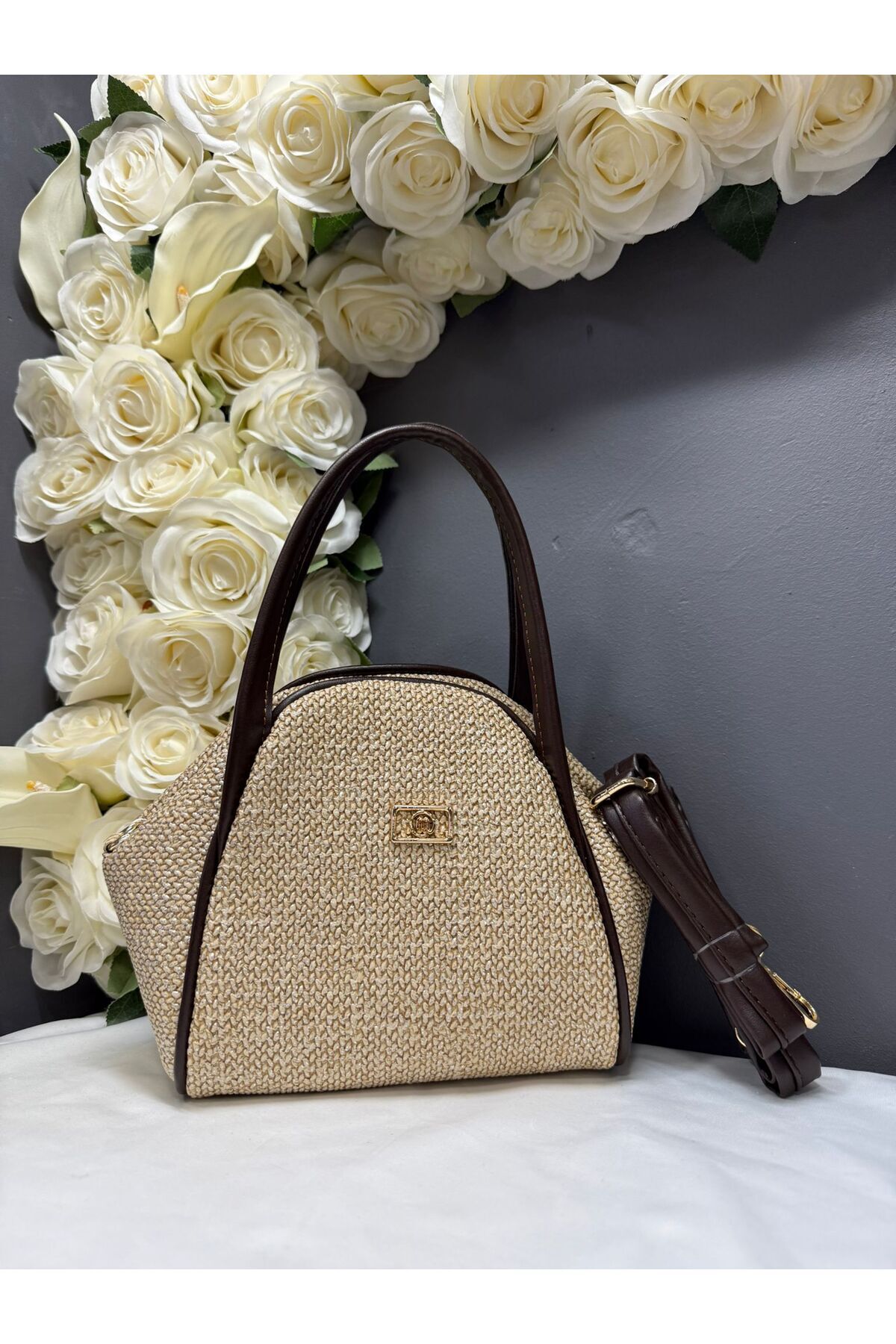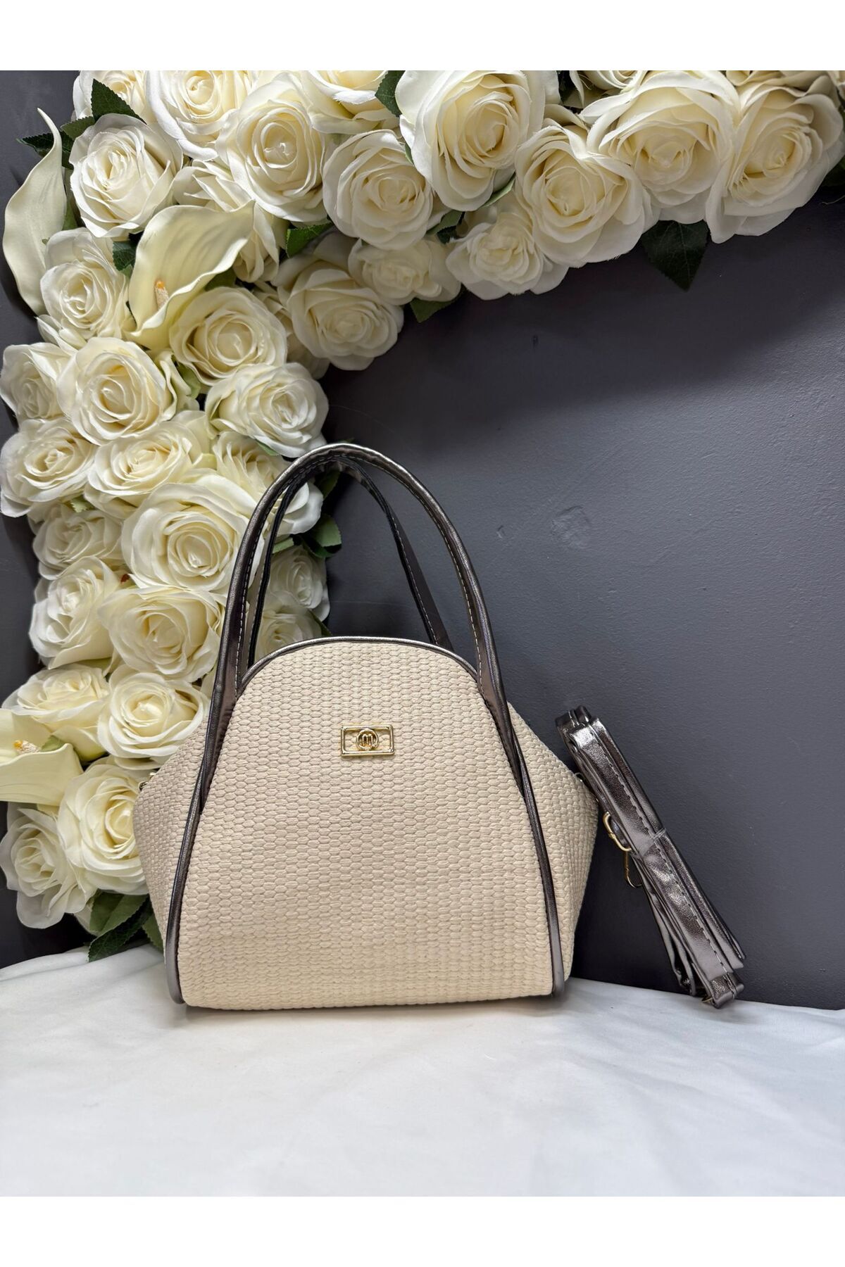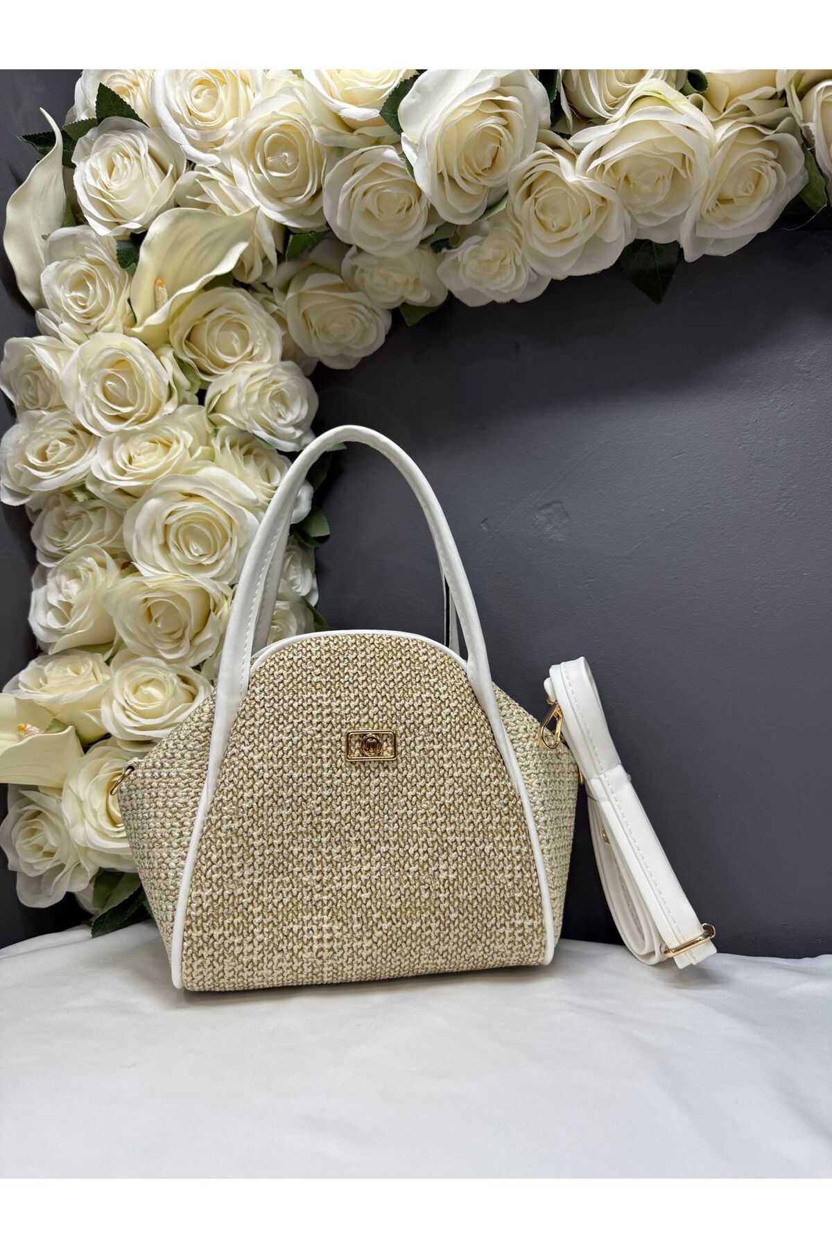 Kadın Krem Hasır Dokulu Kulplu Çanta Kadın Krem Hasır Dokulu Kulplu Çanta miossa00070 تک سایز