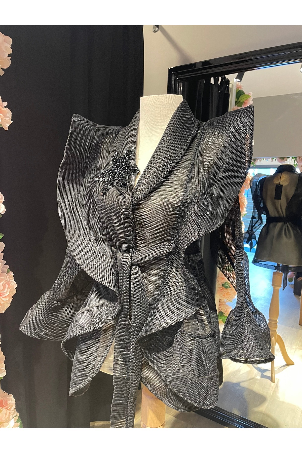 FİLE KUMAŞ YAKA İŞLEMELİ SİYAH ABİYE CEKET FİLE KUMAŞ YAKA İŞLEMELİ SİYAH ABİYE CEKET HA26585 4