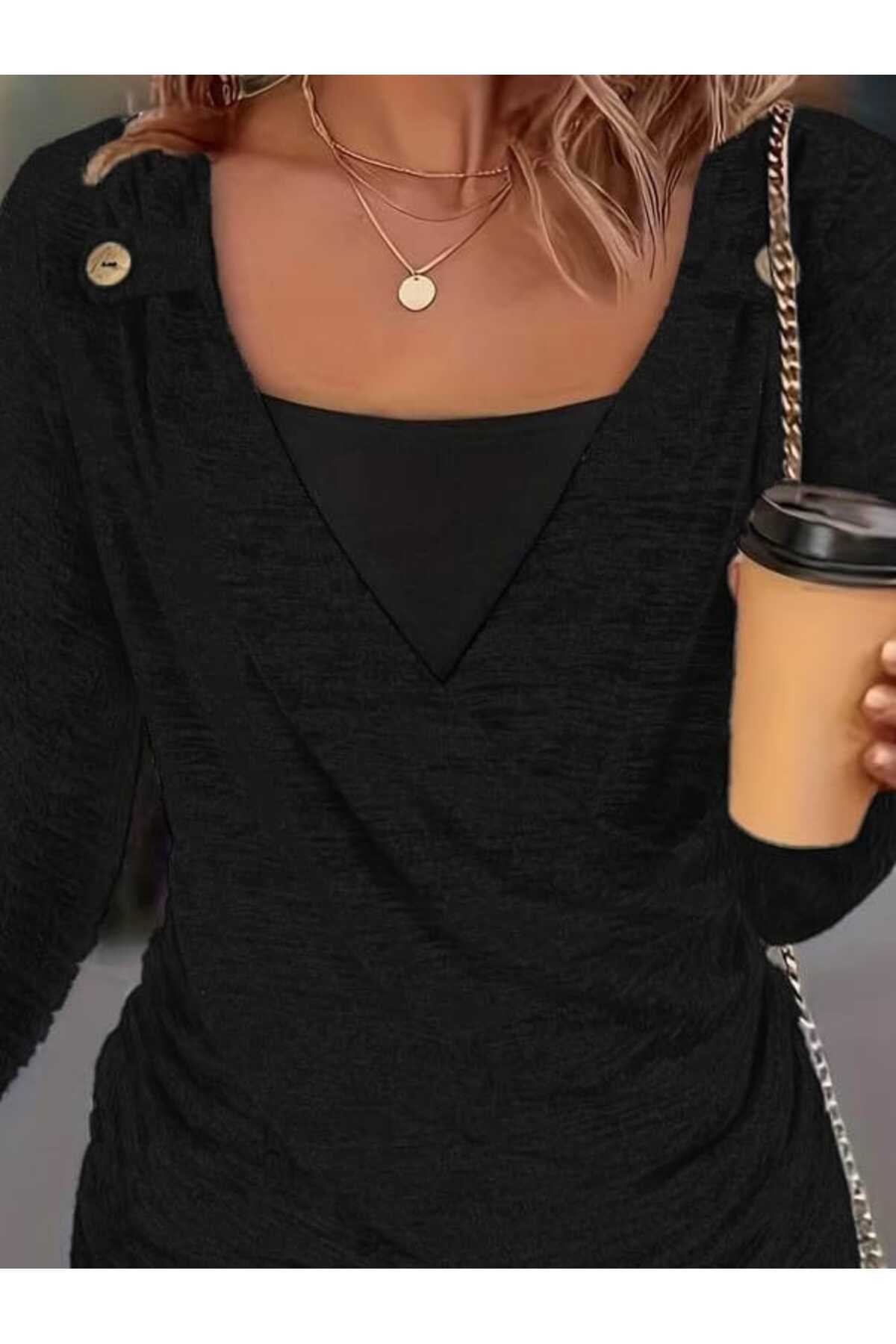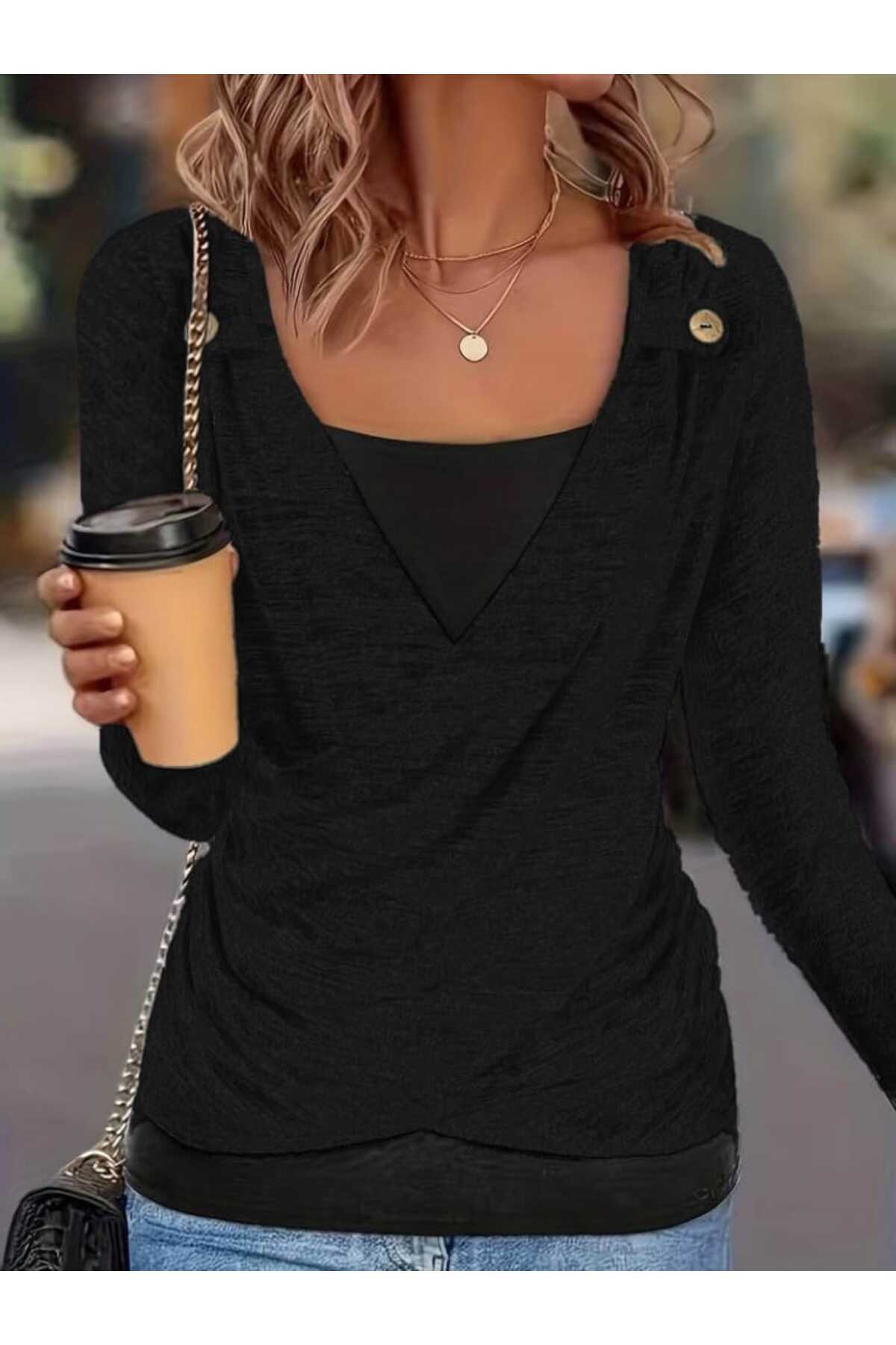 Kadın Kare Yaka Uzun Kollu Düğme Detaylı Yumoş Bluz Kadın Kare Yaka Uzun Kollu Düğme Detaylı Yumoş Bluz ROT-87085-MN 2XL-3XL
