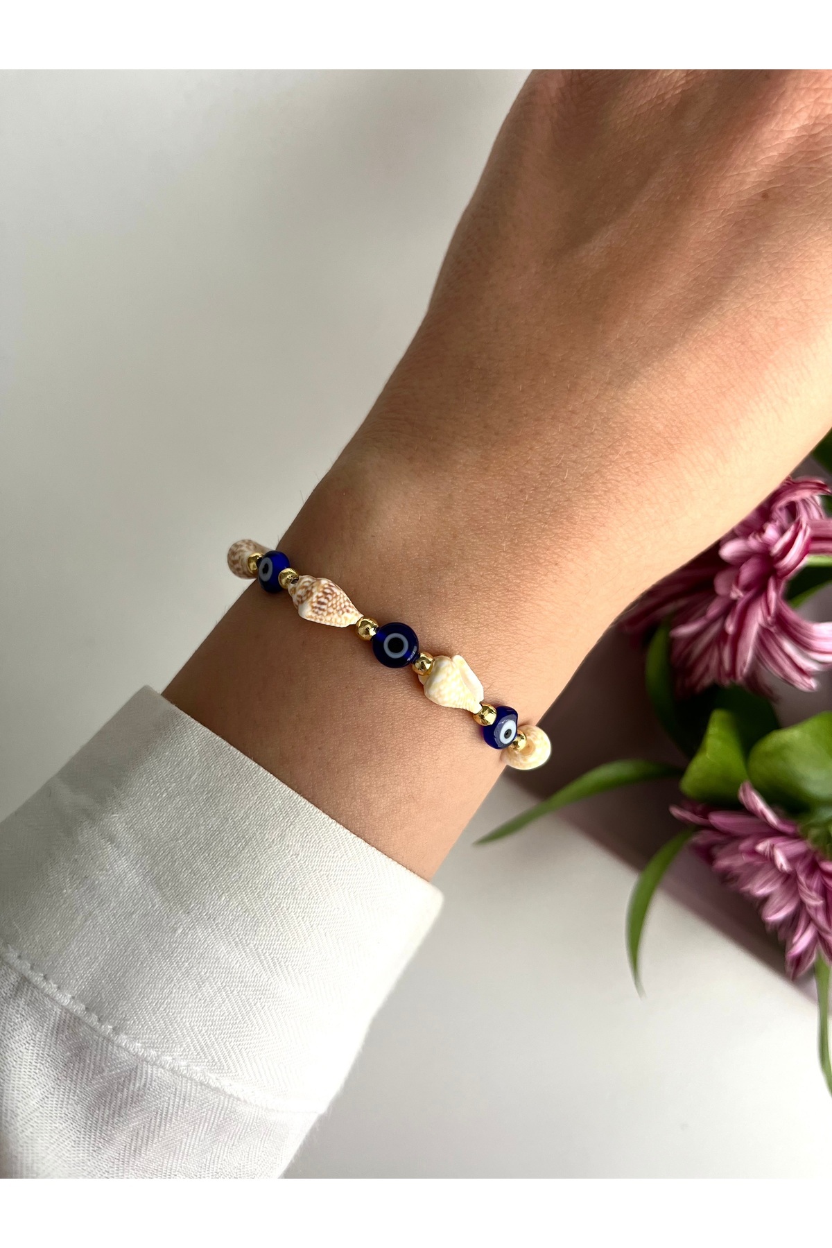 Deniz Kabuklu Nazar Boncuklu Makrome Bileklik Deniz Kabuklu Nazar Boncuklu Makrome Bileklik kbk0010 Standart