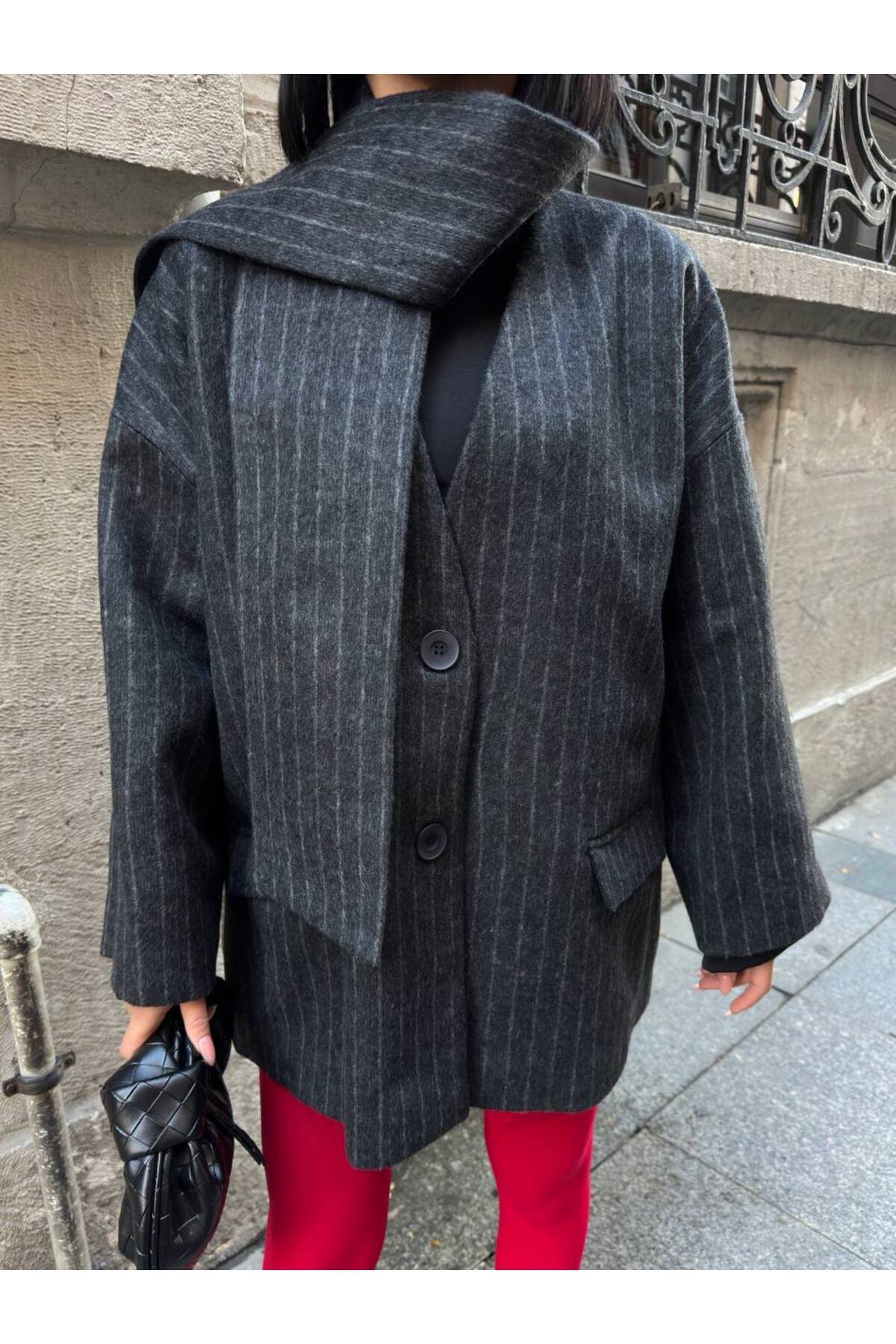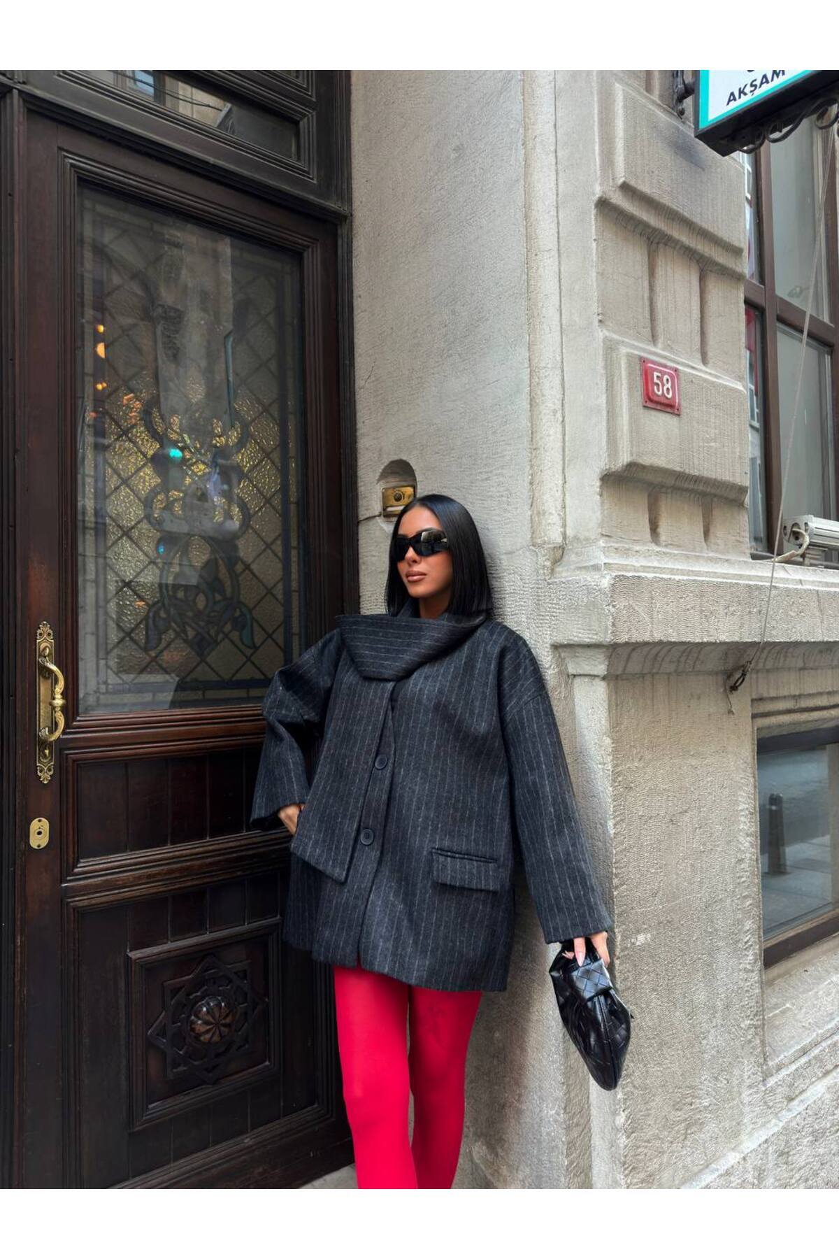 Atkılı Çizgili Kaşe Oversize Kısa Ceket Atkılı Çizgili Kaşe Oversize Kısa Ceket hgatkılıçizgiliceket Standart