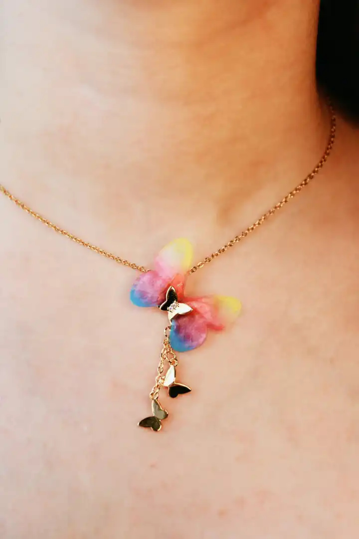 Çelik Pembe Kumaş Sallantılı Kelebek Kolye Çelik Pembe Kumaş Sallantılı Kelebek Kolye 74625517394817163 تک سایز