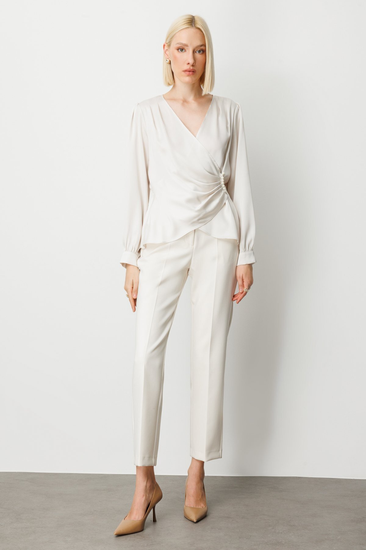 Kruvaze Yaka İnci Detaylı Bluz Kruvaze Yaka İnci Detaylı Bluz 26K.EKL.BLZ.03009.1 42