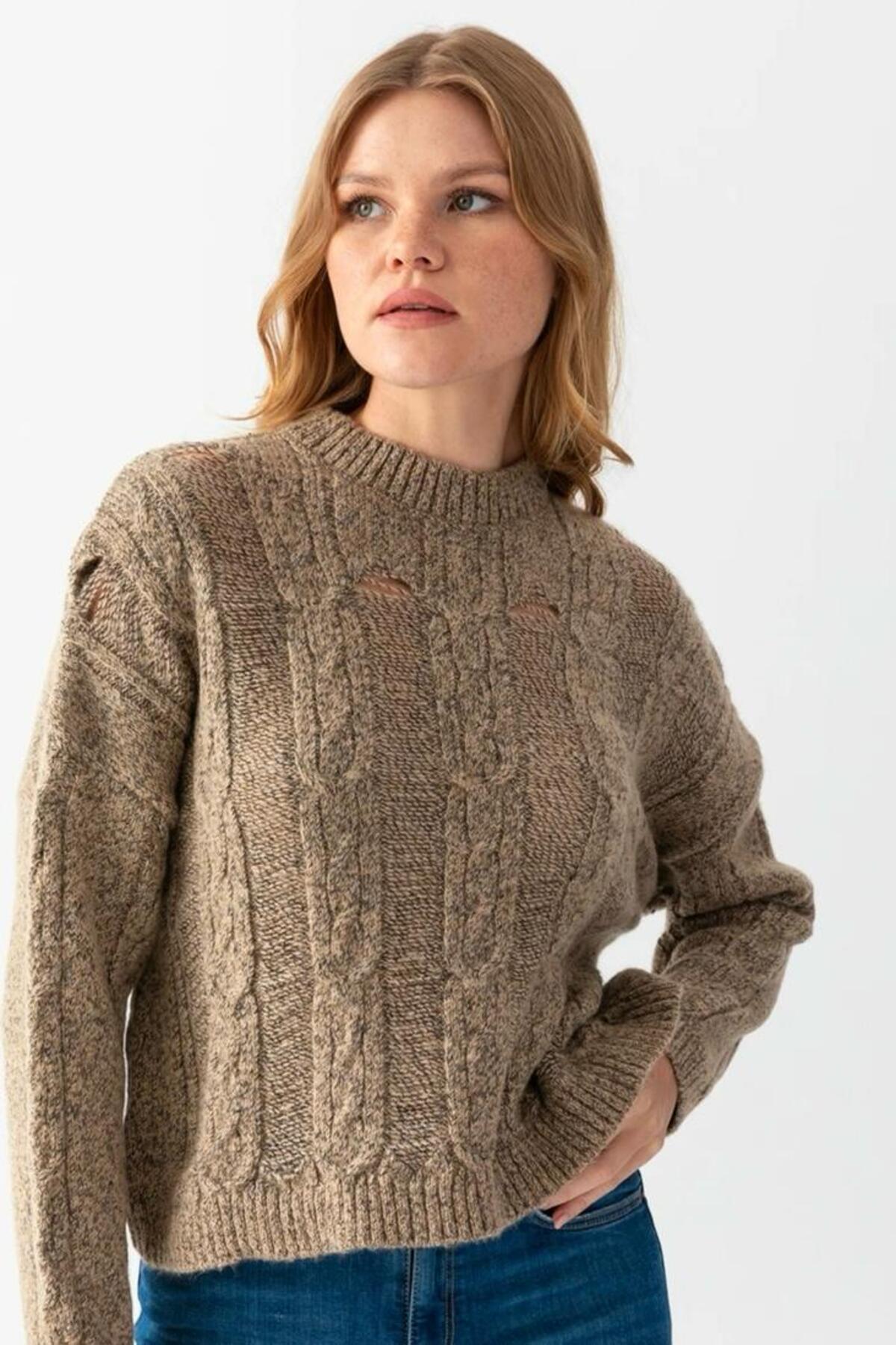 Örgü Detaylı Bisiklet Yaka Triko Kazak AW25KZ0043 Örgü Detaylı Bisiklet Yaka Triko Kazak AW25KZ0043 L