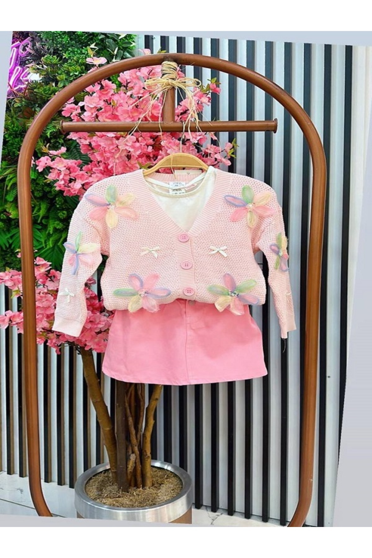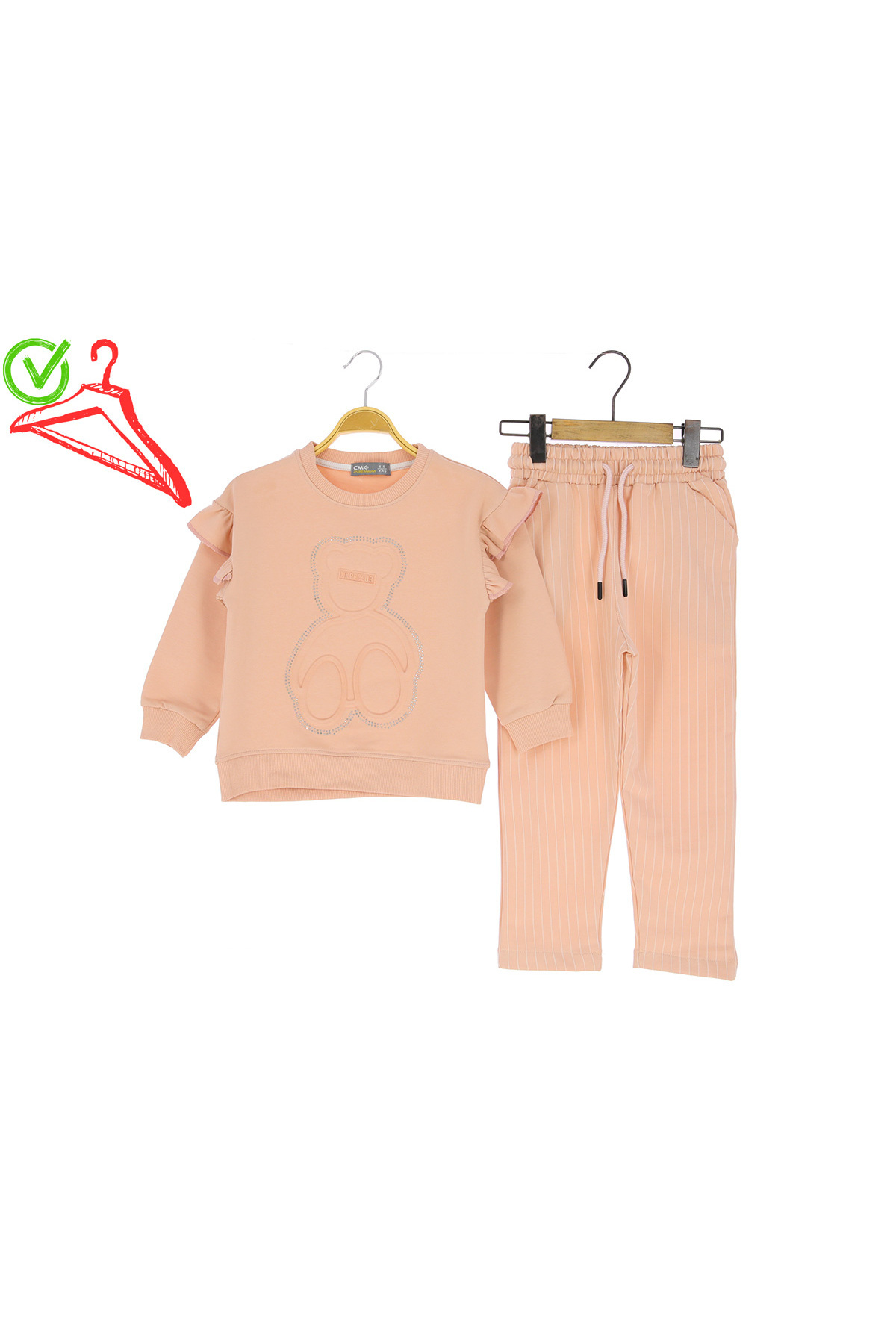 BİR BEDEN BÜYÜK ALIN Kız Çocuk Fırfır Detaylı Taş İşlemeli İkili Takım - Bej BİR BEDEN BÜYÜK ALIN Kız Çocuk Fırfır Detaylı Taş İşlemeli İkili Takım - Bej 122 4-5 Yaş